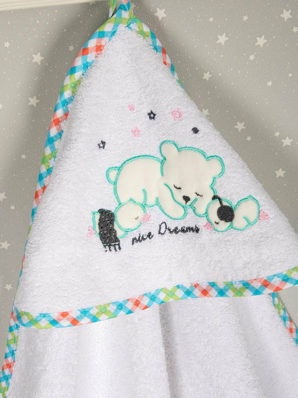Полотенце для новорожденного детское махровое с вышивкой уголок для мальчика и девочки для ванной банное 80*90 см интересное: