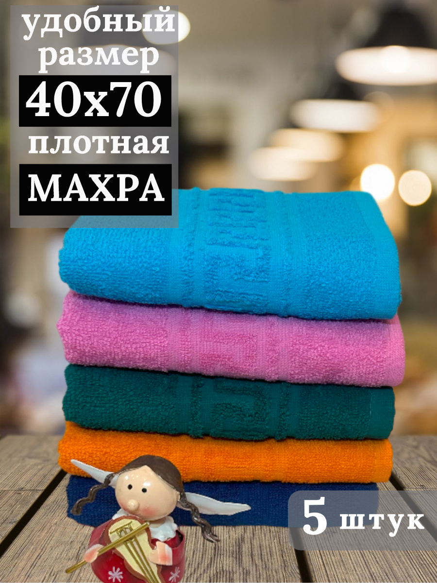 Купить Комплект махровых полотенец 40х70 см ( 380гр/м2), 5 шт., синий, розов., бирюза, зелен, оранж