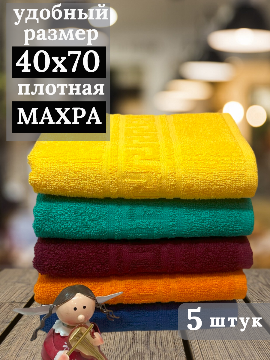 Купить Комплект махровых полотенец 40х70 см ( 380гр/м2), 5 шт., желт, синий, зеленый, оранж, малин