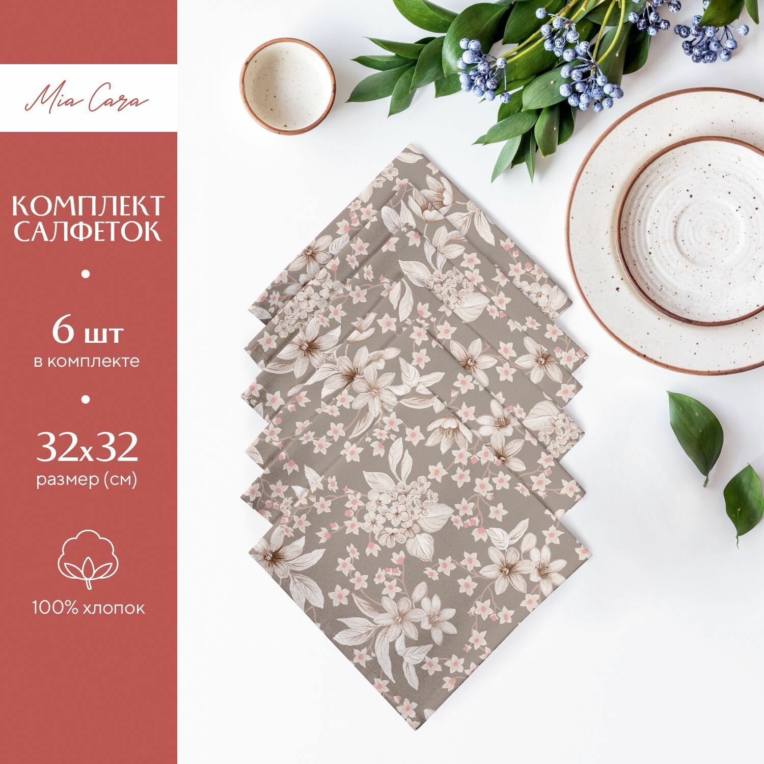 Набор салфеток рогожка 32х32 (6 шт.) "Mia Cara" рис 30565-1 Fiorita