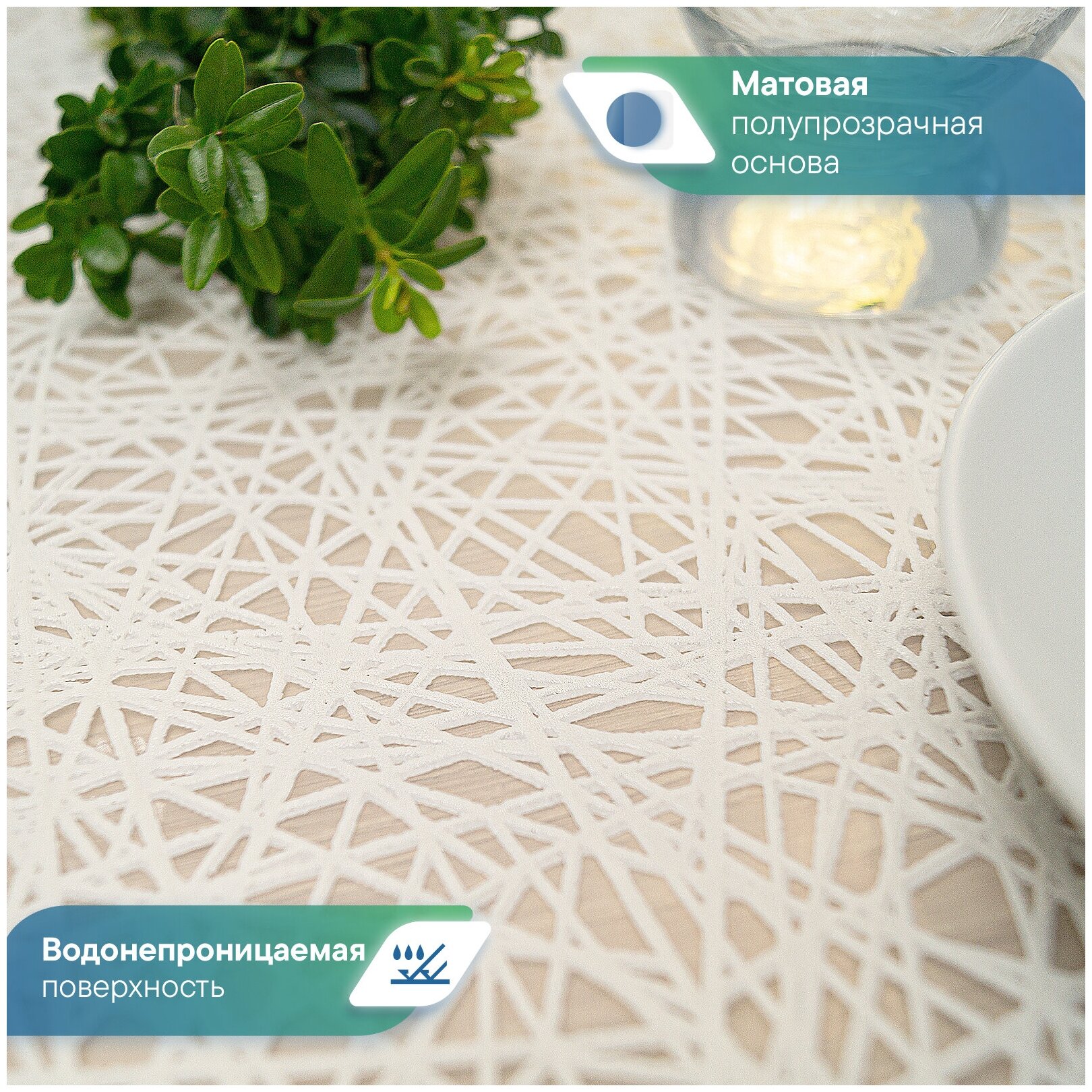 Скатерть клеенка VILINA "Элегия" прямоугольная водонепроницаемая на стол для кухни 110х135 см. 011-white