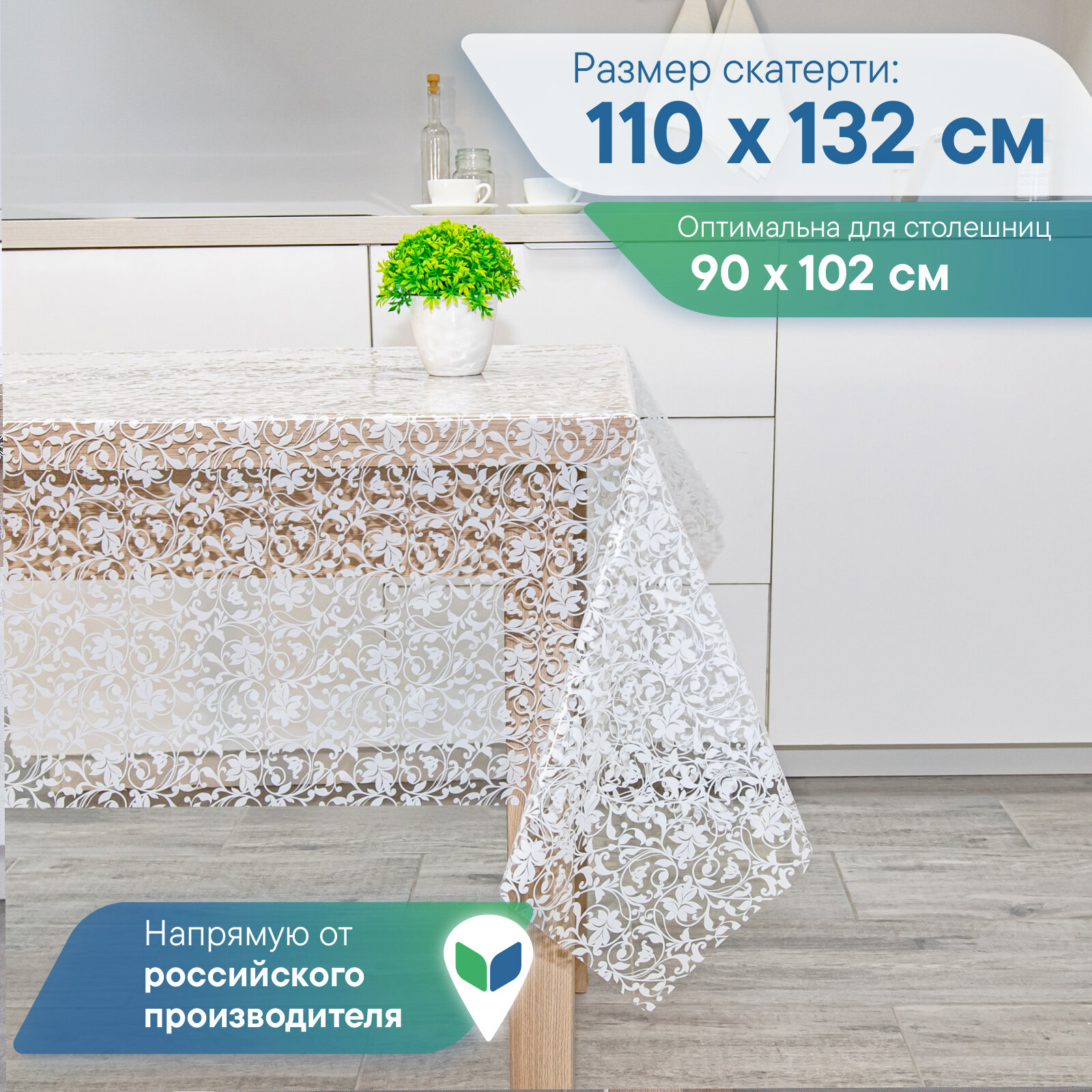 Скатерть прозрачная столовая с рисунком VILINA "Ажурная " клеенка водонепроницаемая на стол прямоугольная 110х132 см