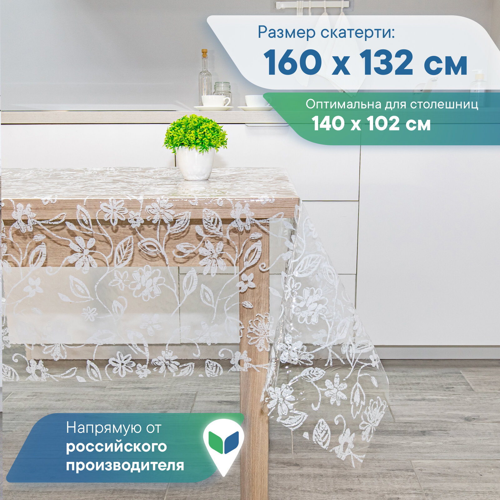 СохранитьСкатерть VILINA "Ажурная " столовая прозрачная с рисунком клеенка водонепроницаемая на стол прямоугольная 132х160 см интересное: