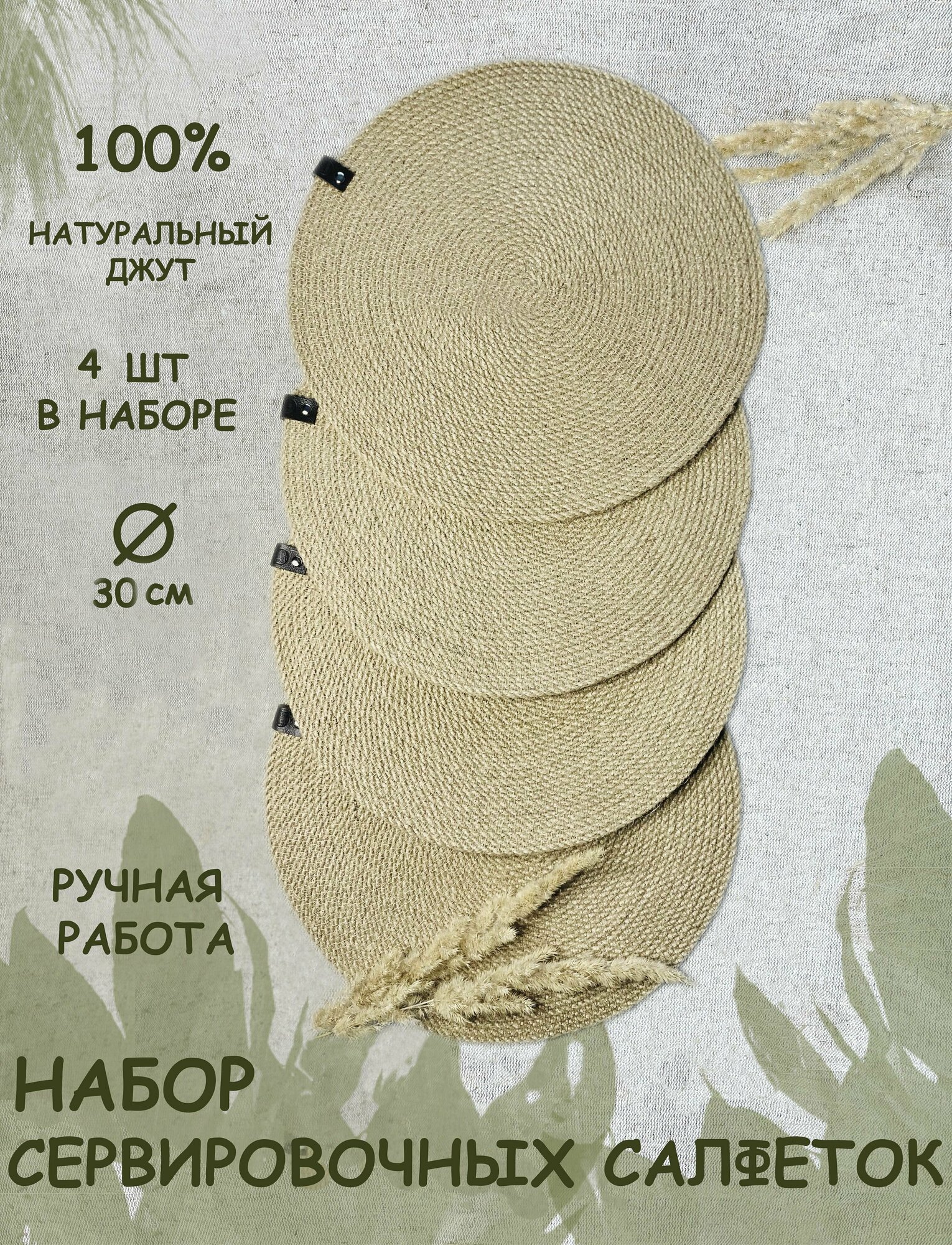 Салфетки на стол сервировочные из джута 4 шт, 30 см, Eco Cord, плейсматы интересное: