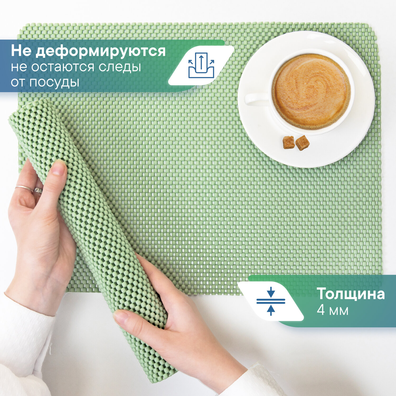 Салфетки сервировочные на стол/ плейсматы VILINA/ плейсмат для сервировки 2 шт 35х35 см из вспененного ПВХ фисташковый