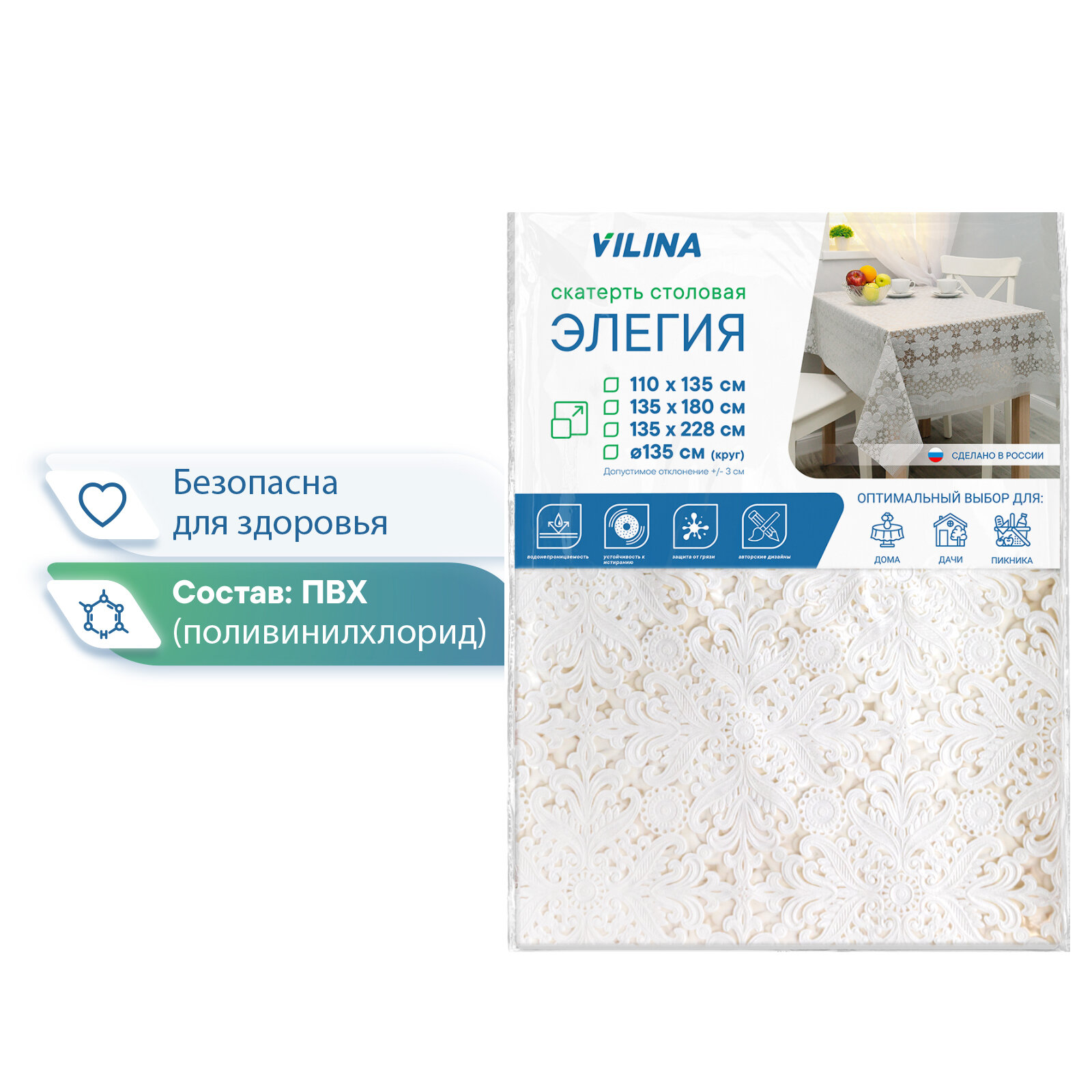 Ниже Вы можете прочитать отзывы на Скатерть клеенка VILINA "Элегия" прямоугольная водонепроницаемая на стол для кухни с узором кружево 110х135 см 014-white, ознакомится с подробными характеристиками, посмотреть интересные обзоры и фотографии на Скатерть клеенка VILINA "Элегия" прямоугольная водонепроницаемая на стол для кухни с узором кружево 110х135 см 014-white.
