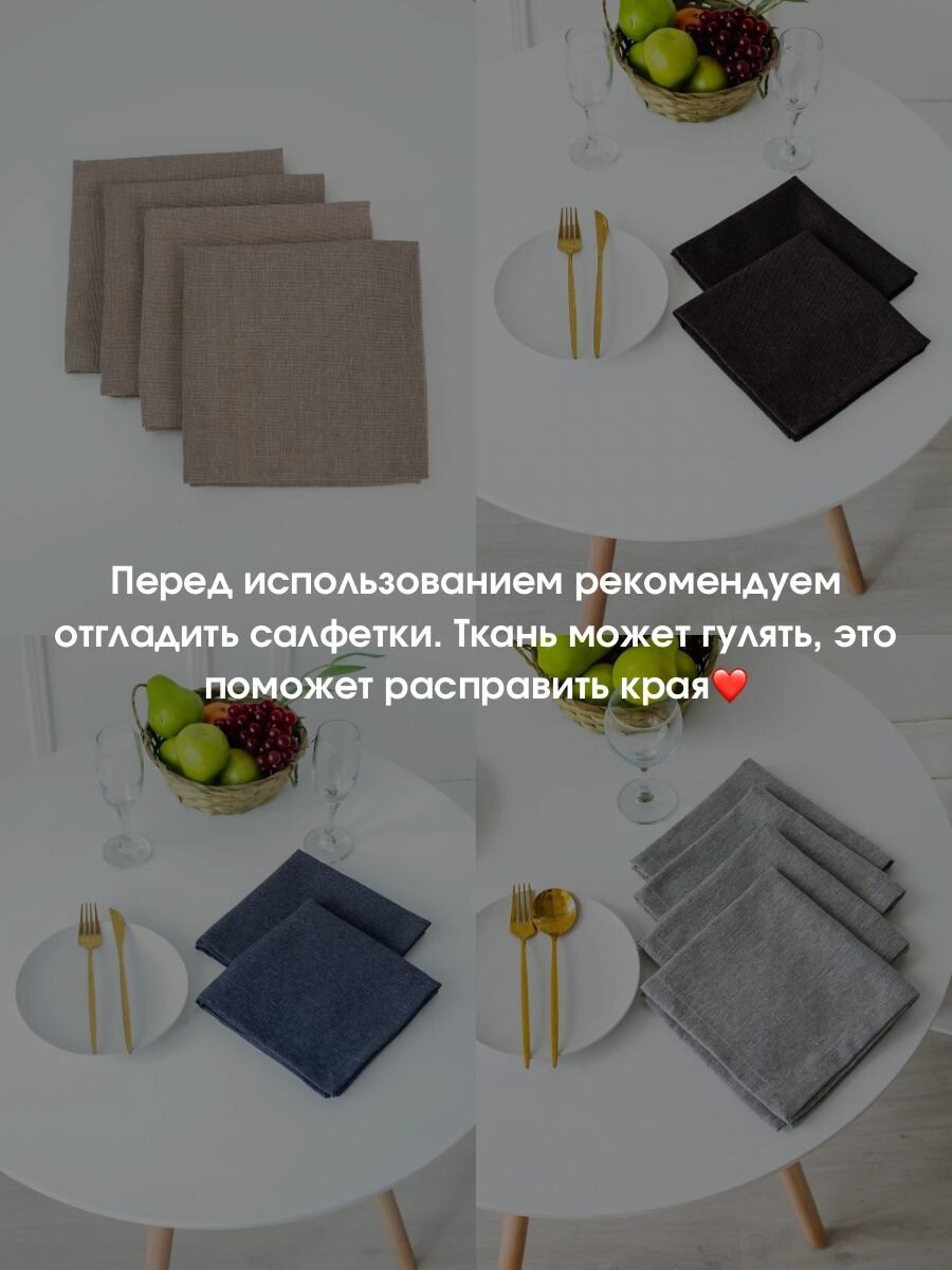 Салфетки на стол сервировочные, квадратные / Набор сервировочных тканевых салфеток для украшения стола LeoHome 40х40 см, 4 шт, серые, хлопок