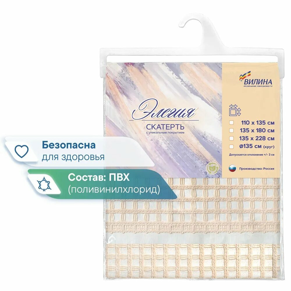 Скатерть клеенка VILINA "Элегия" прямоугольная водонепроницаемая на стол для кухни 110х135 см. 001-beige
