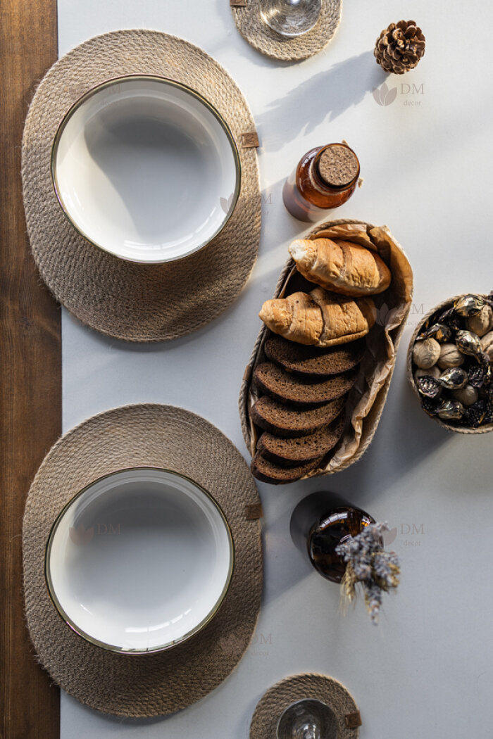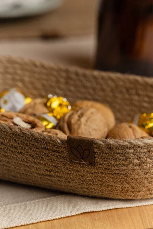Сервировочные салфетки + корзинка для сервировки стола из джутового волокна
