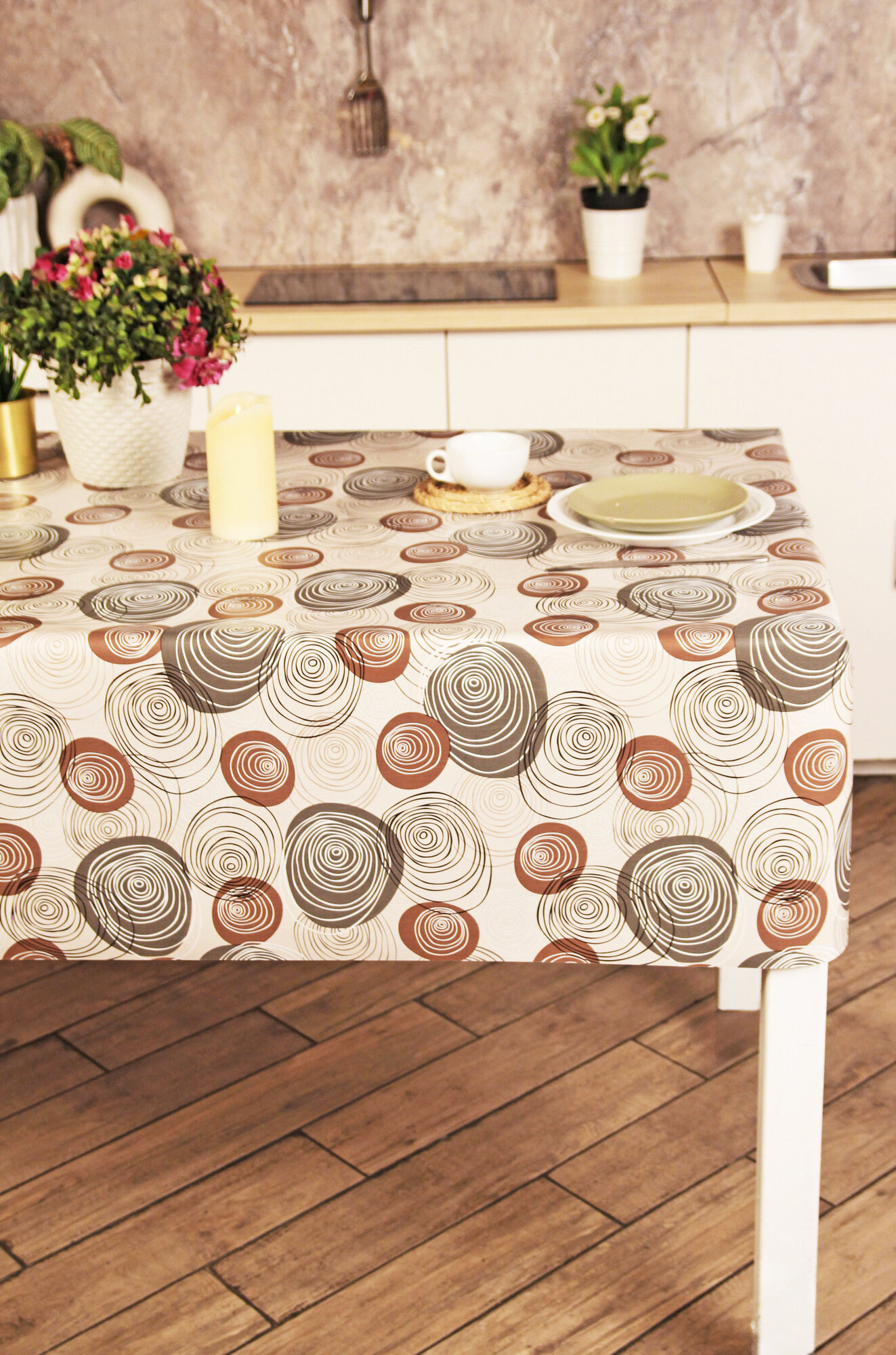 Купить Скатерть, Клеенка на стол dekorama 140x140см Brown Curl DEK-104A