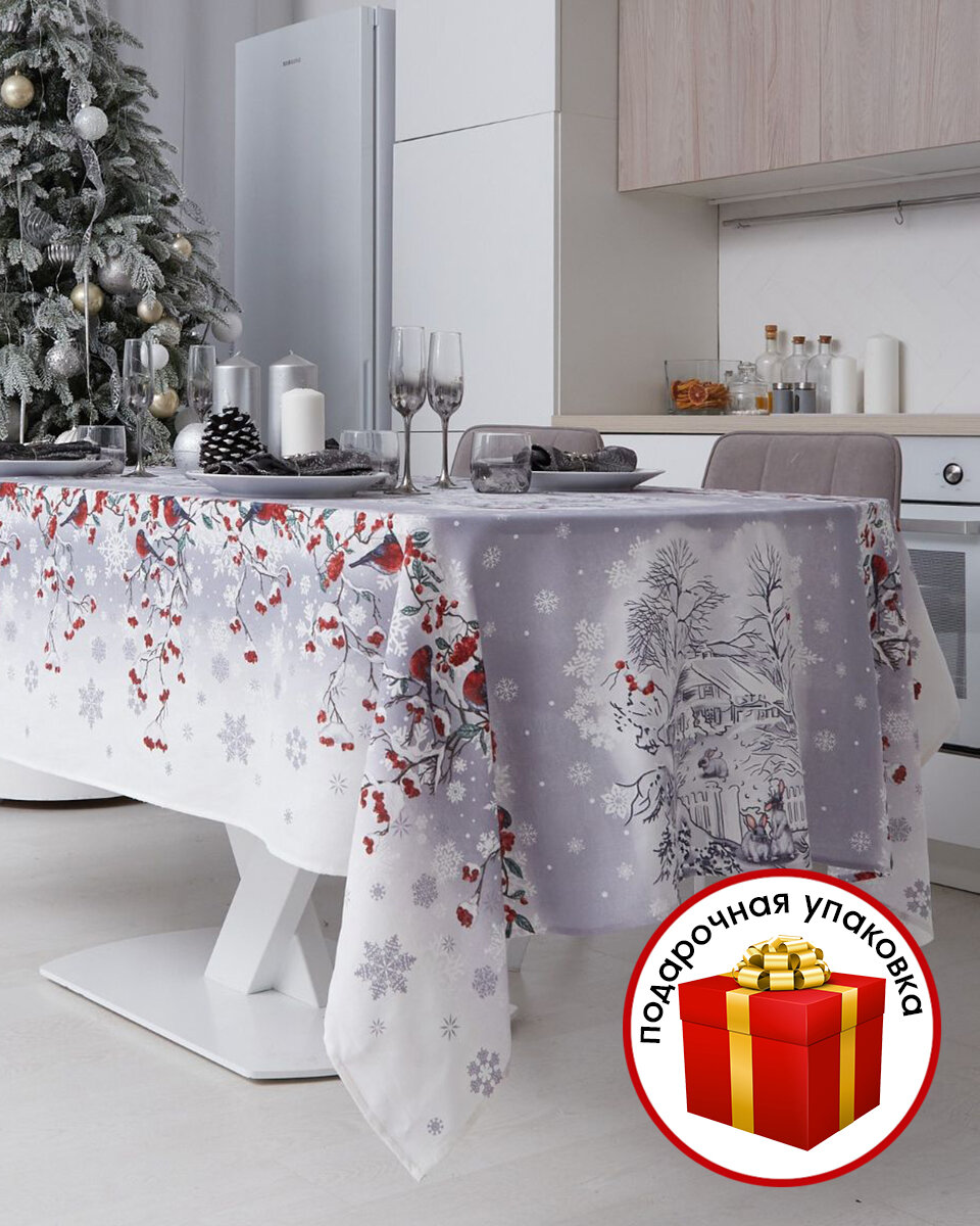 Новогодняя скатерть на стол/150х220/тканевая/рогожка/хлопок/новый год/подарок интересное: