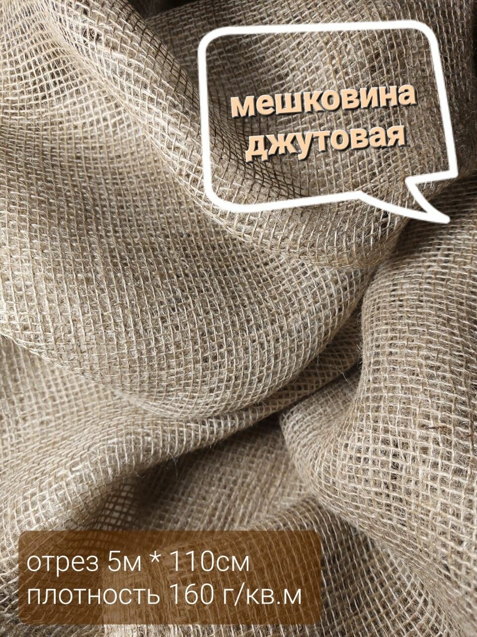 Мешковина джутовая, плотностью 160 г/кв.м., отрез 5м*110см. Ткань упаковочная для растений, декора интерьера, поделок, картин интересное:
