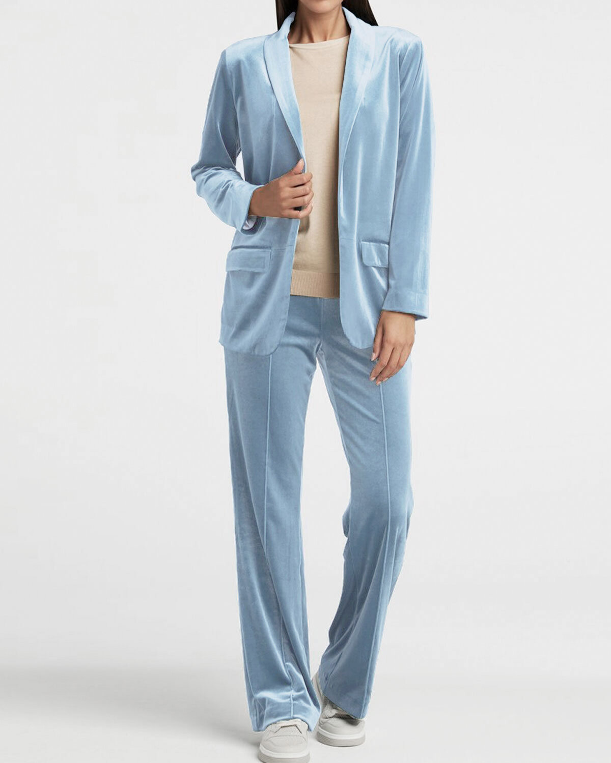 Купить Ткань для шитья и рукоделия Велюр стрейч "Марсия" 405гр 1 м * 150 см, голубой 027