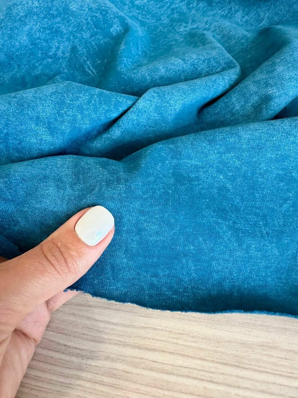 Сохранить2 м. Кулирка варенка хлопок ткань с велюровым эффектом. Цвет синий. (отрез 100*180 см) интересное:
