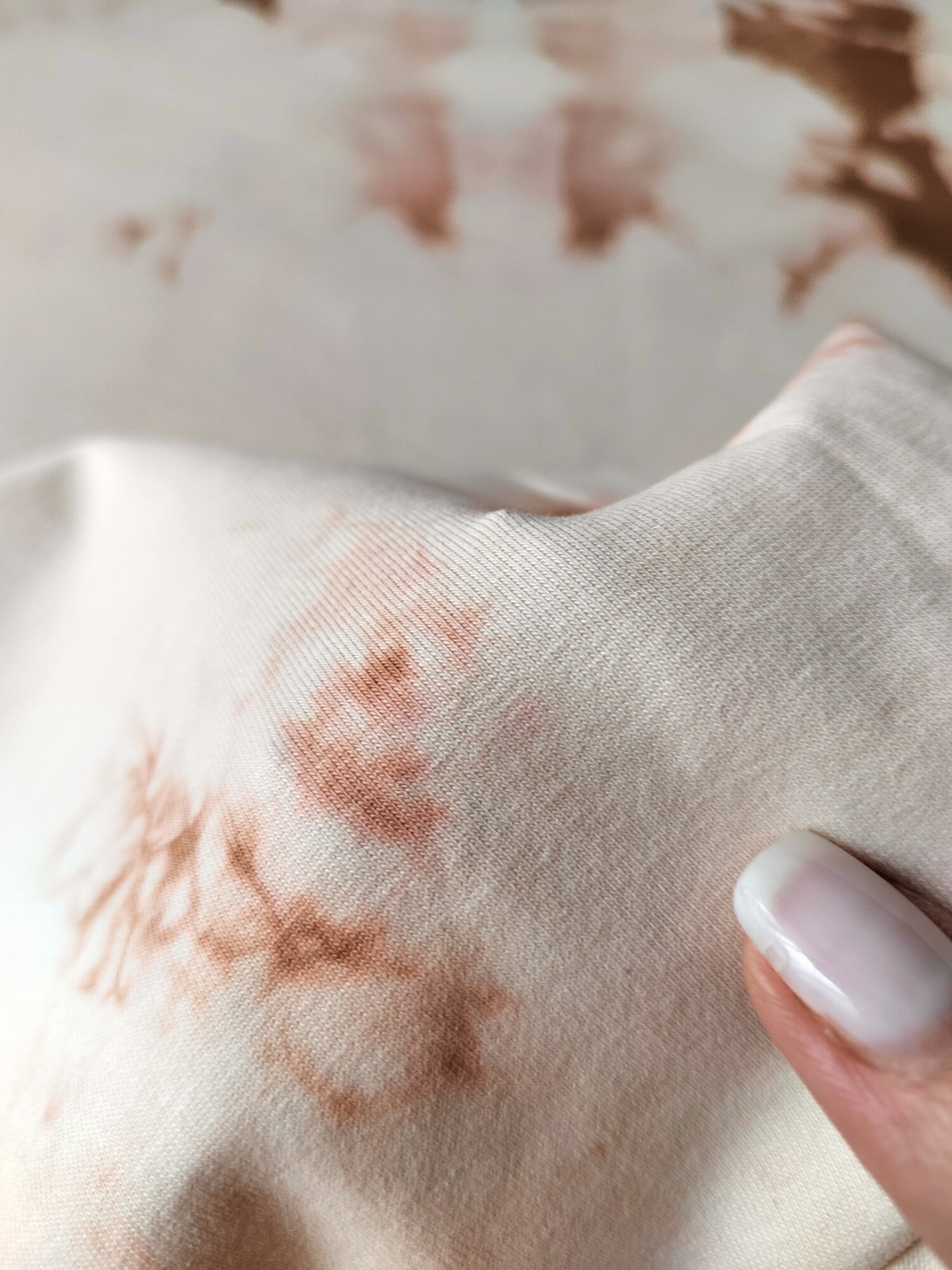 0,5м. Кулирка велюр эффект ткань тай-дай. Цвет бежевый, коричневый. (отрез 50*180 см)