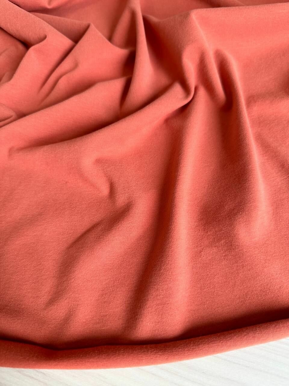 Сохранить0,5м. Кулирка ткань для шитья с велюровым эффектом. Цвет терракотовый. (отрез 50*180 см) интересное:
