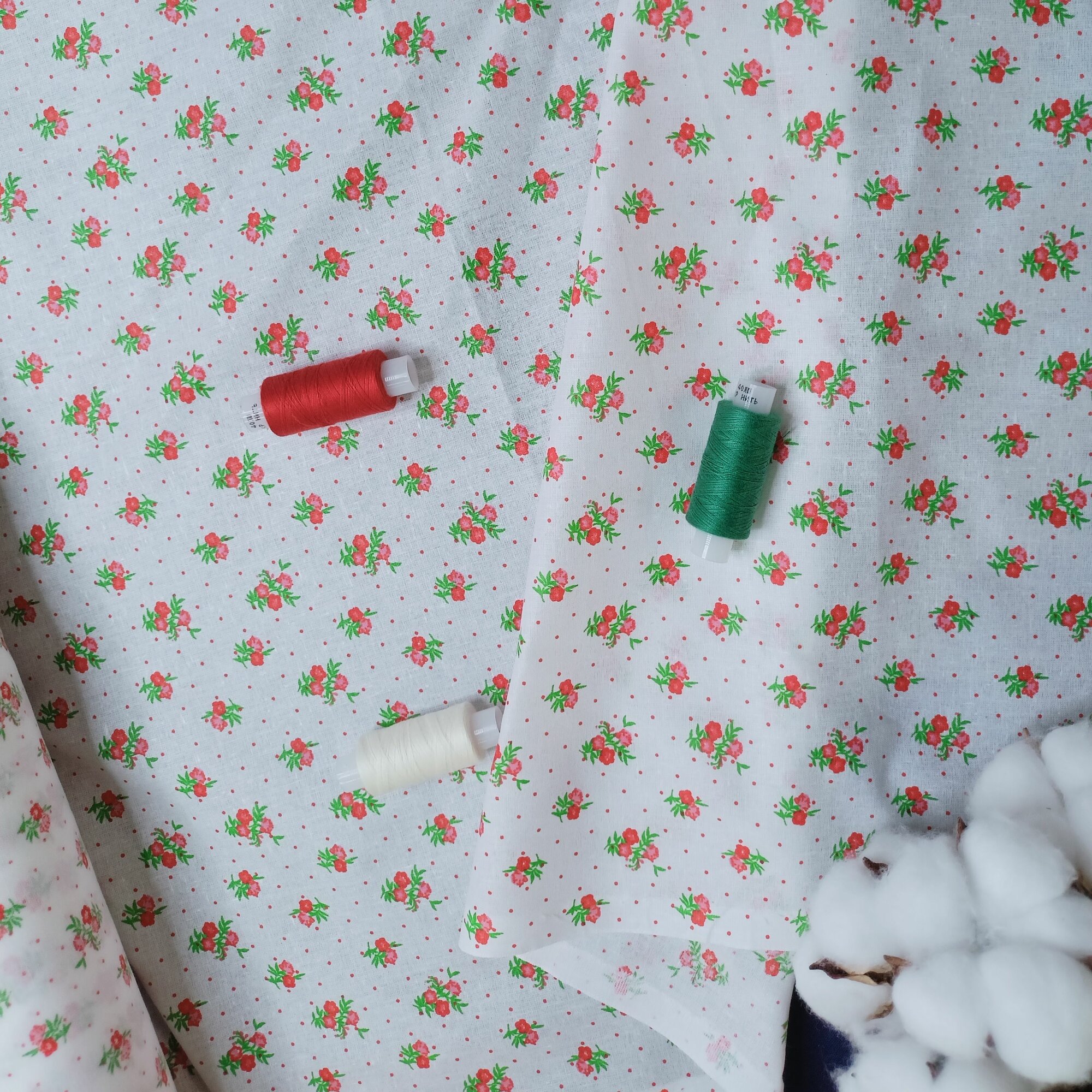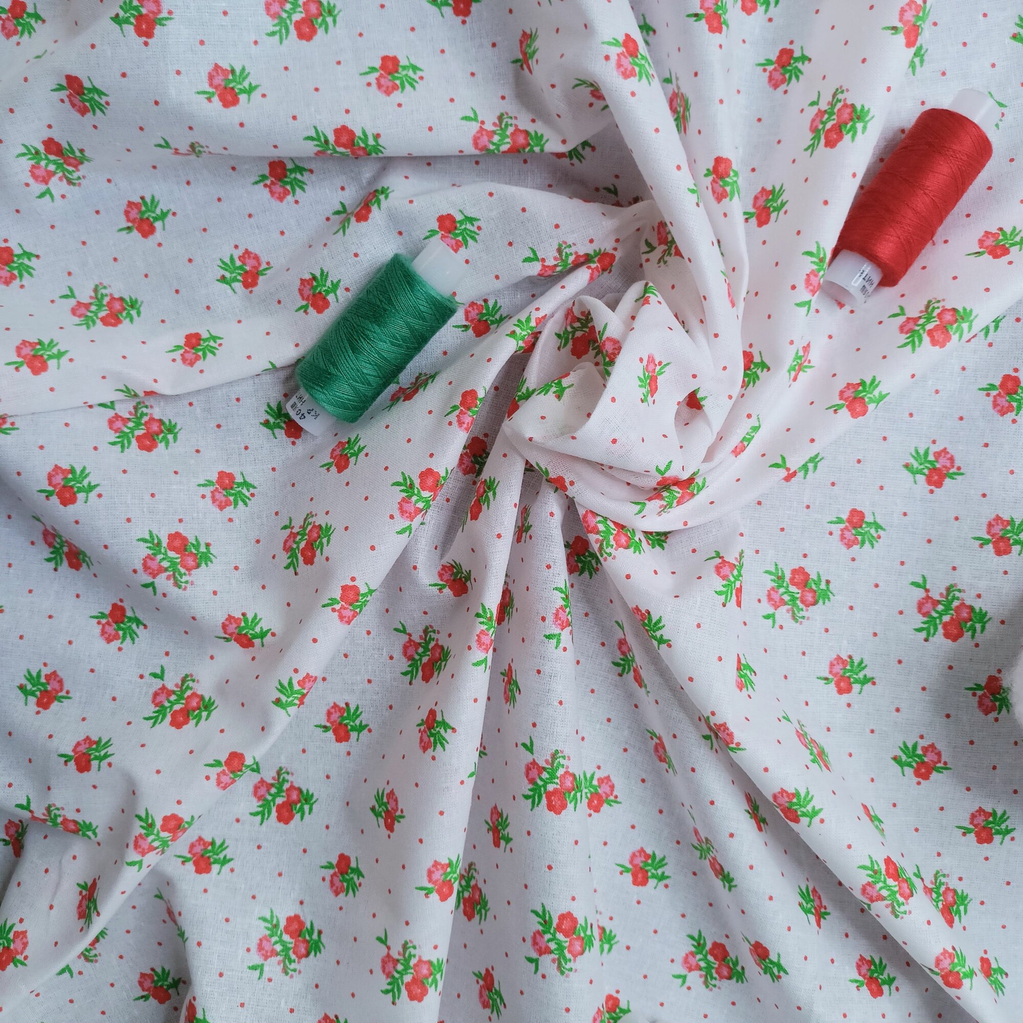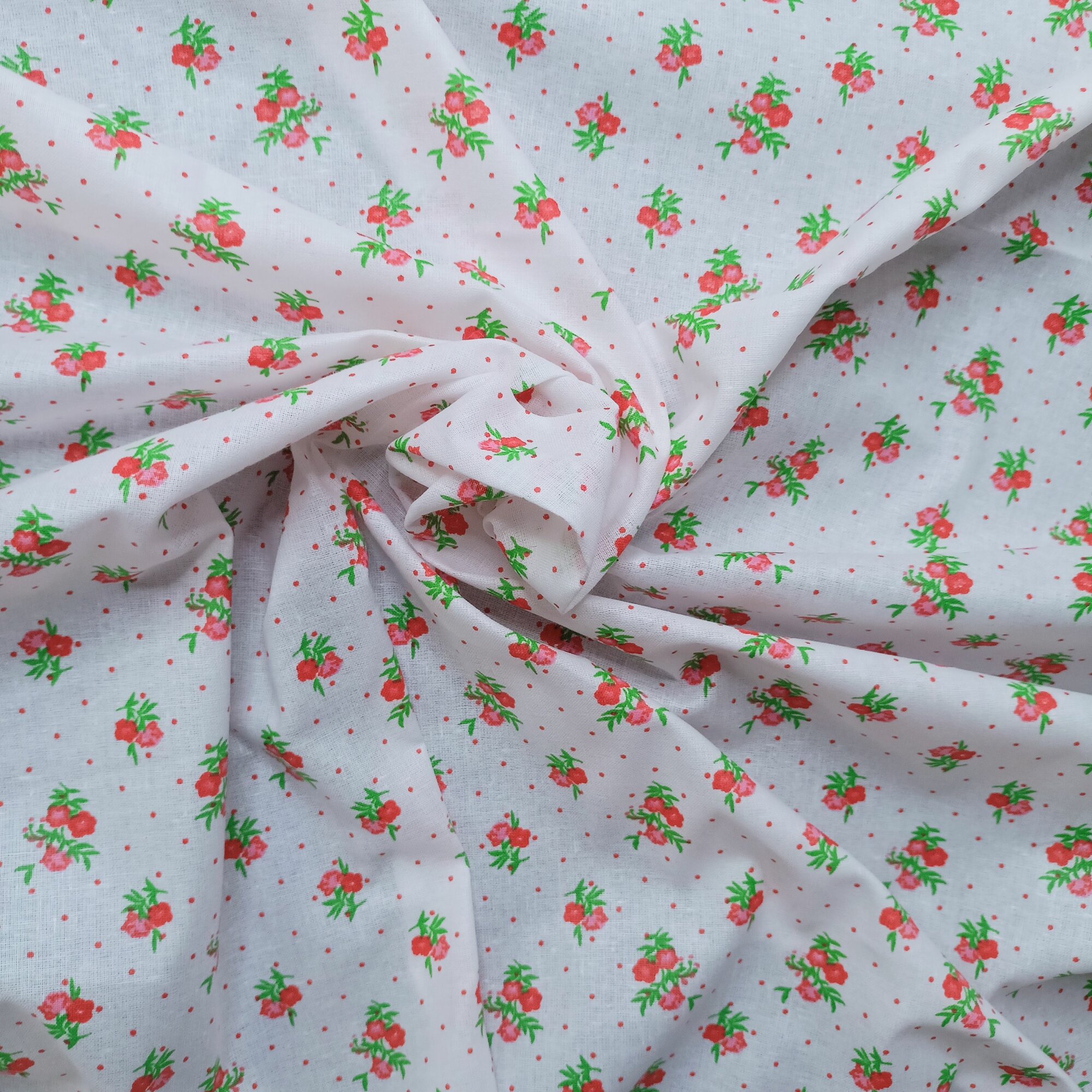 Купить Ткань на отрез "Домтекс35" Ситец "Красные цветочки" ширина 80 см, длина 200 см