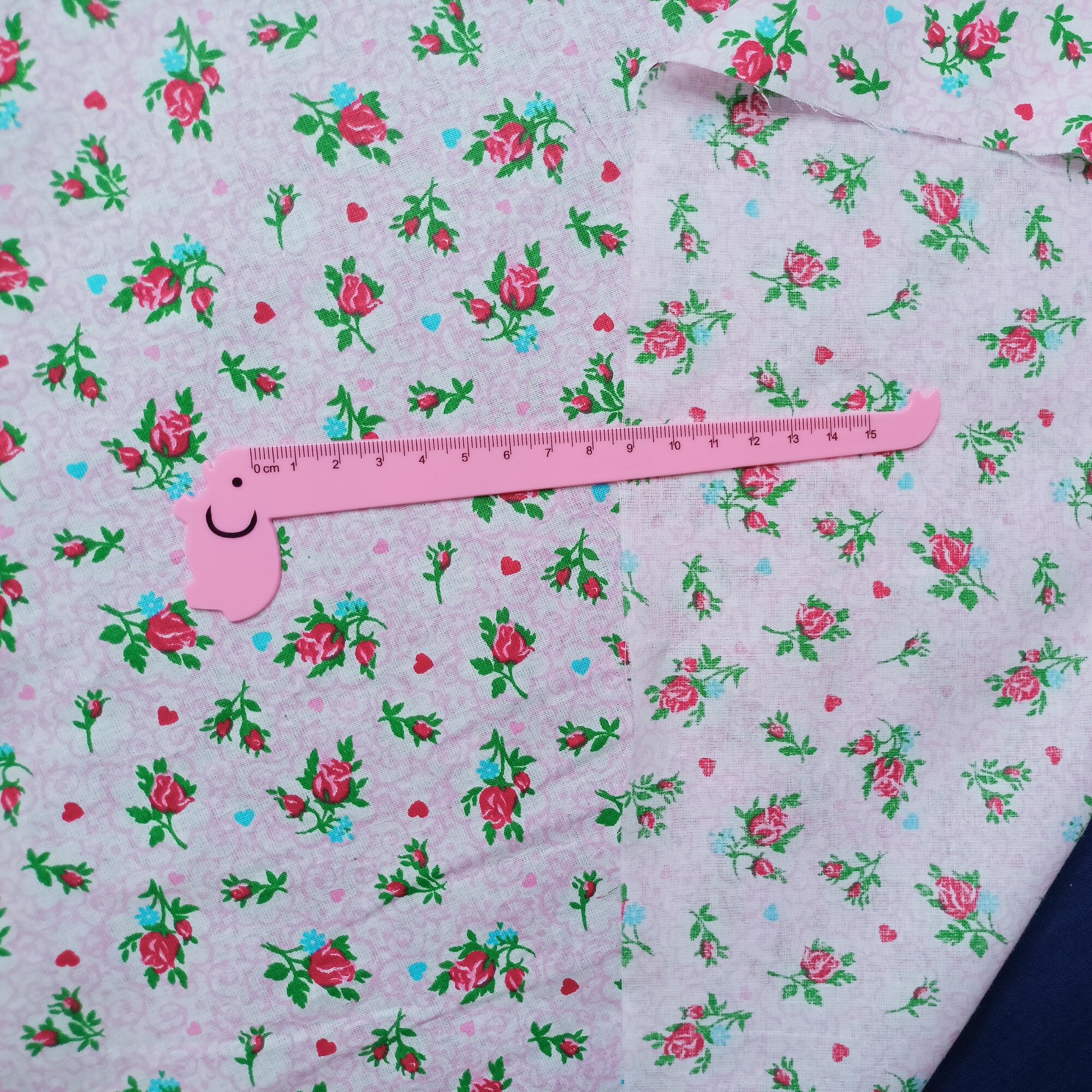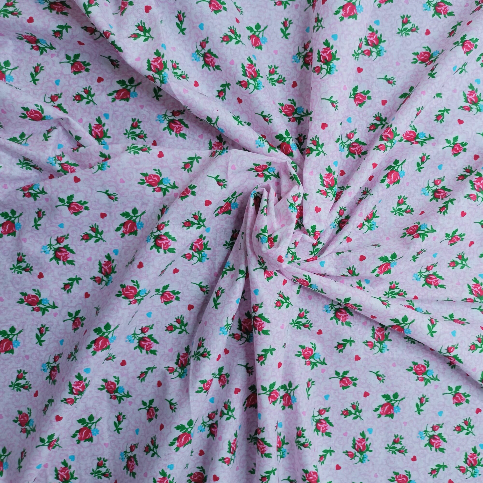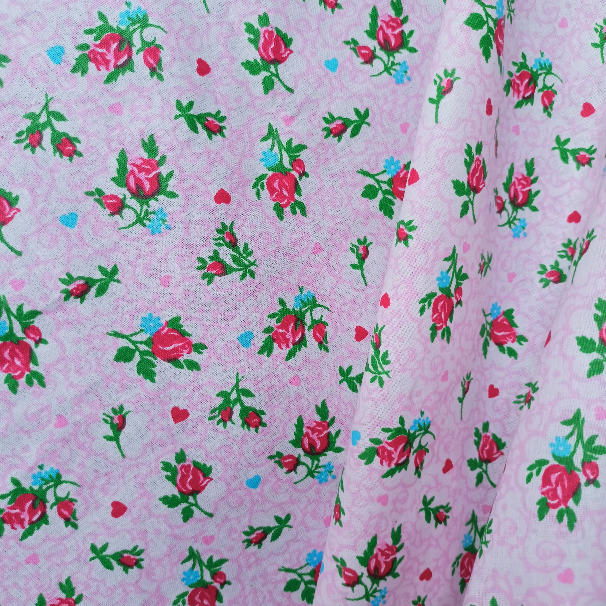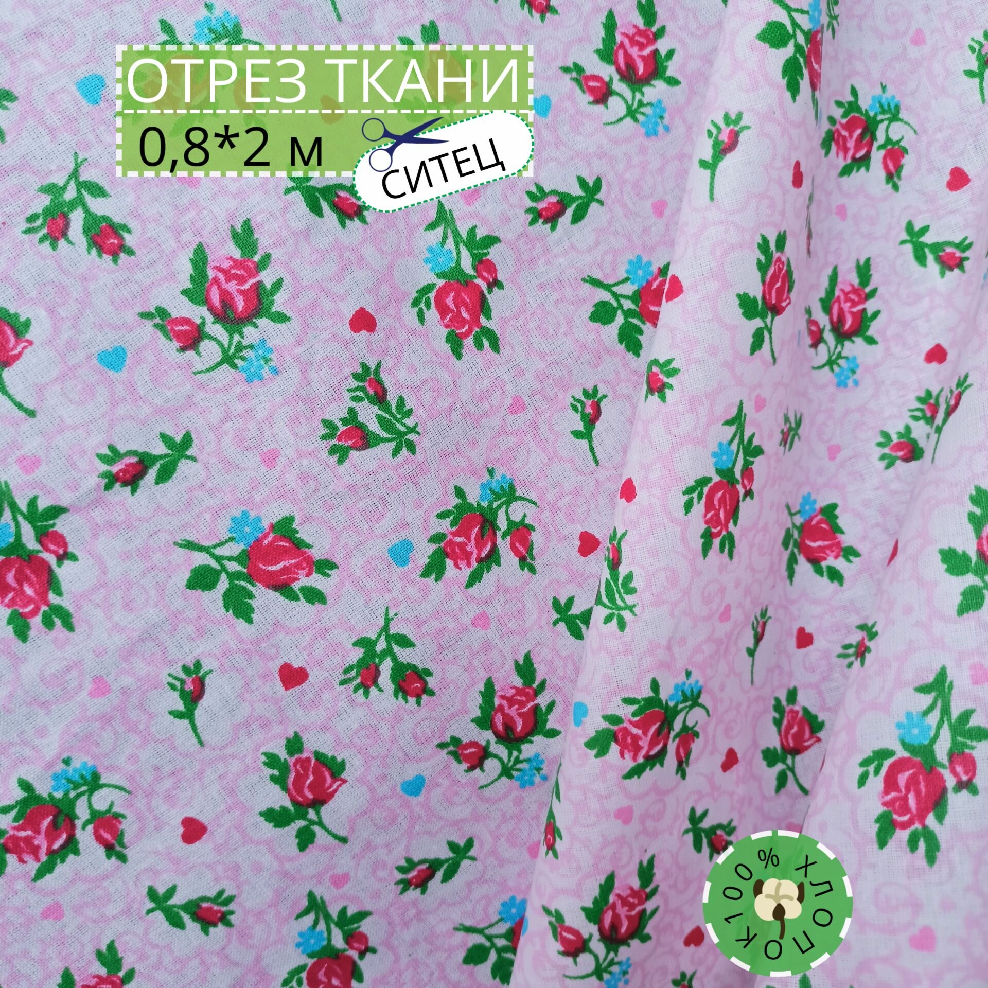 Ткань на отрез для шитья и рукоделия "Домтекс35" Ситец"Красные розочки на розовом ширина 80 см, длина 500 см