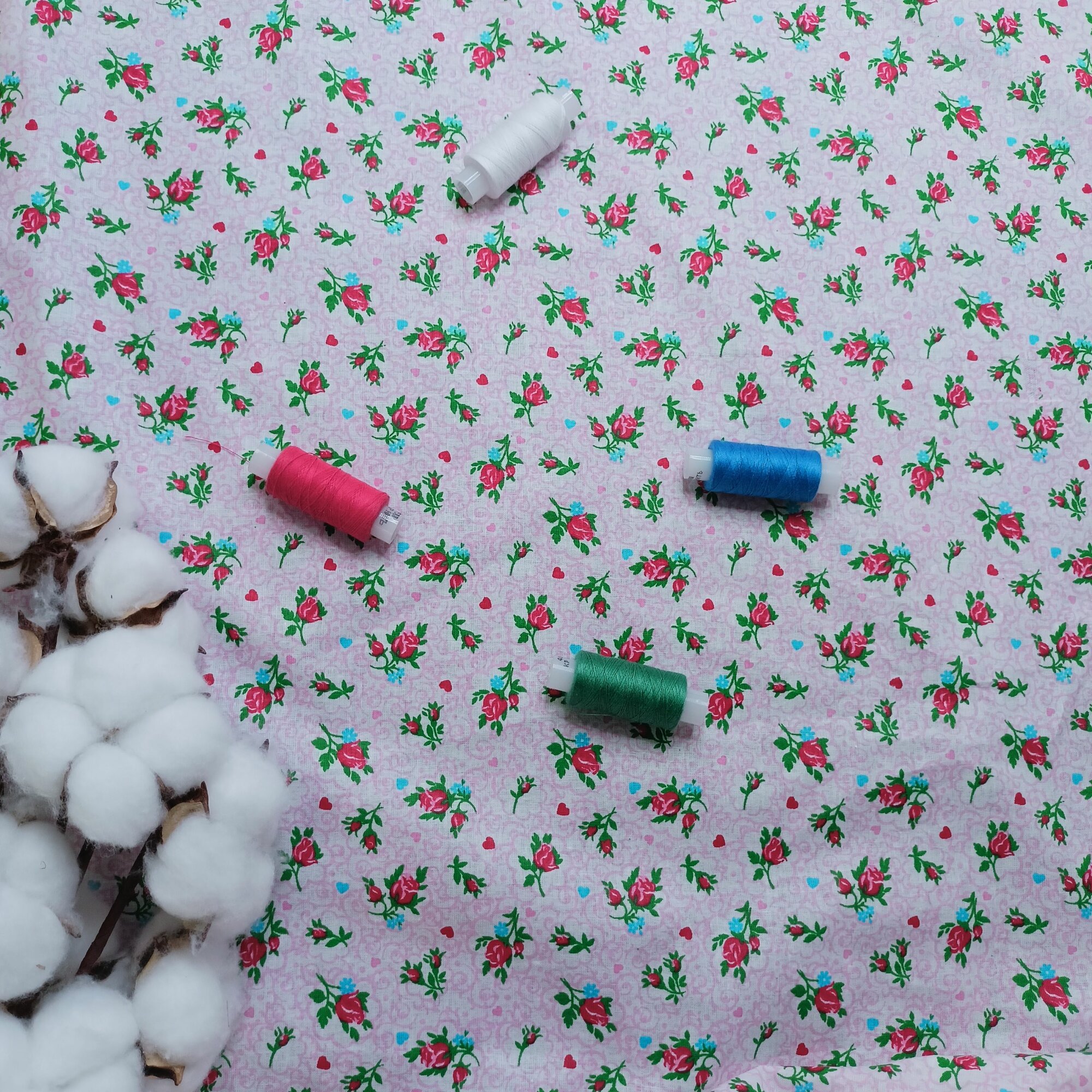 СохранитьТкань на отрез для шитья и рукоделия "Домтекс35" Ситец"Красные розочки на розовом ширина 80 см, длина 200 см интересное: