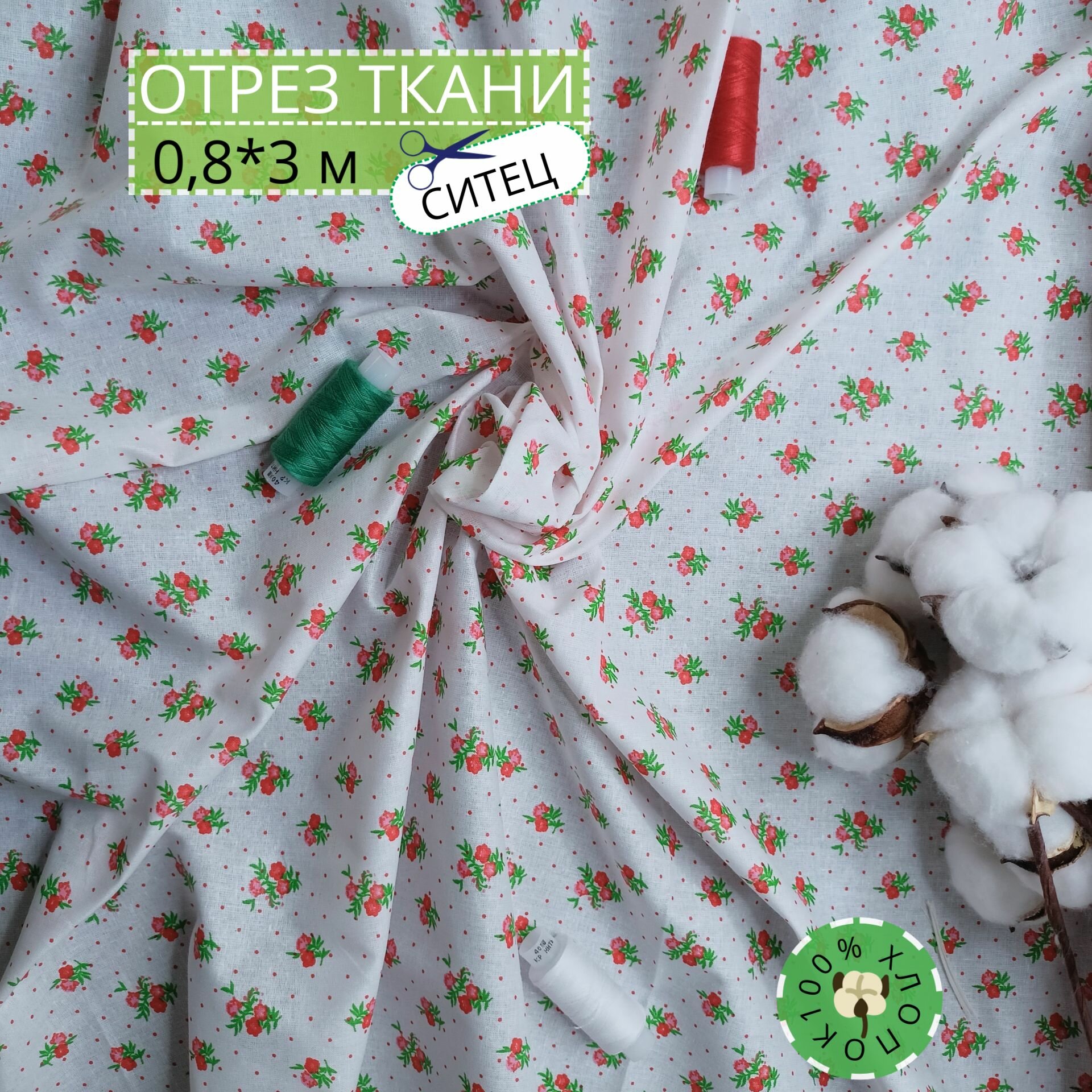 Ткань на отрез "Домтекс35" Ситец "Красные цветочки" ширина 80 см, длина 200 см