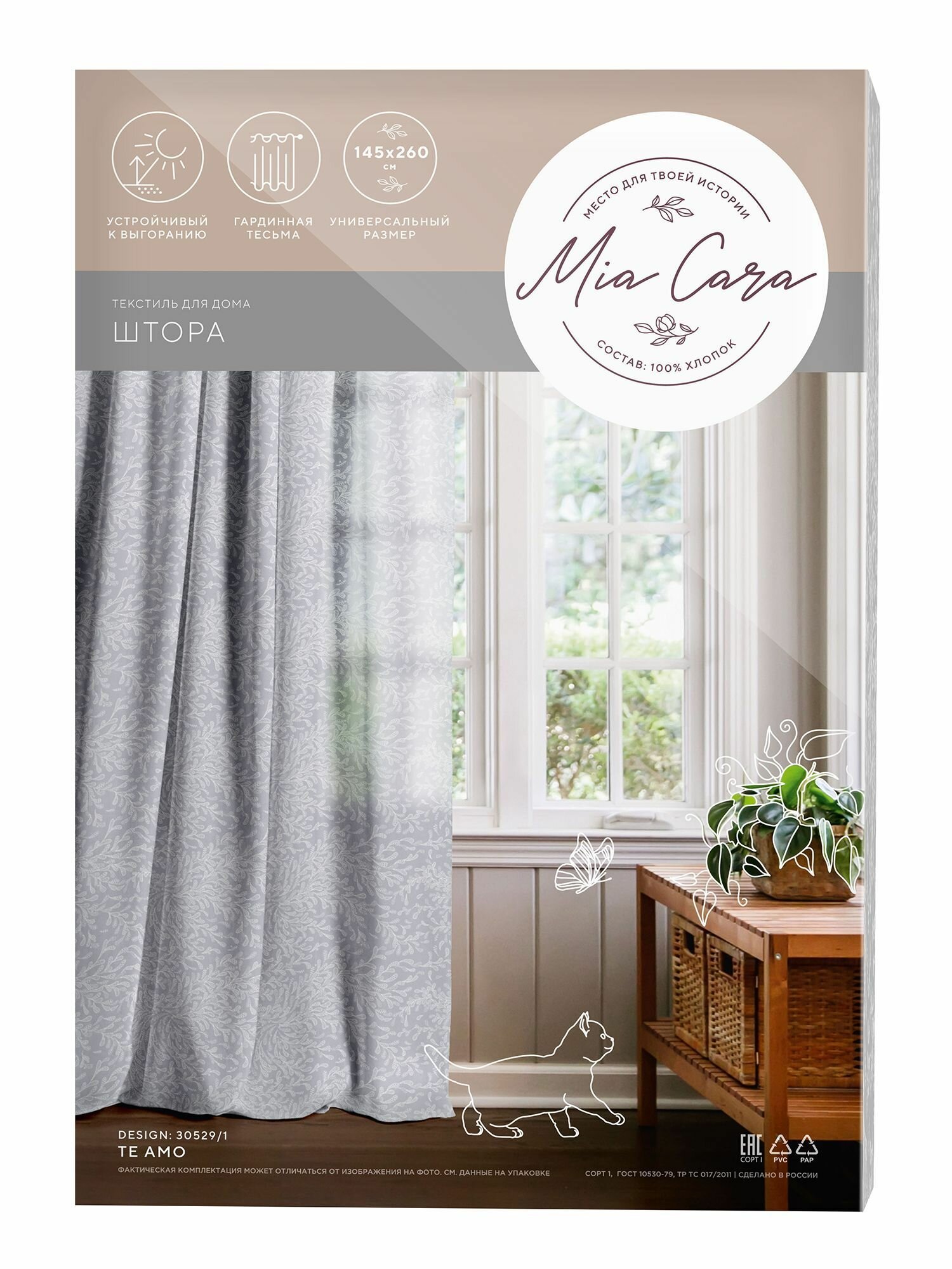 Штора рогожка 145х260 "Mia Cara" рис 30529-1 Te amo интересное: