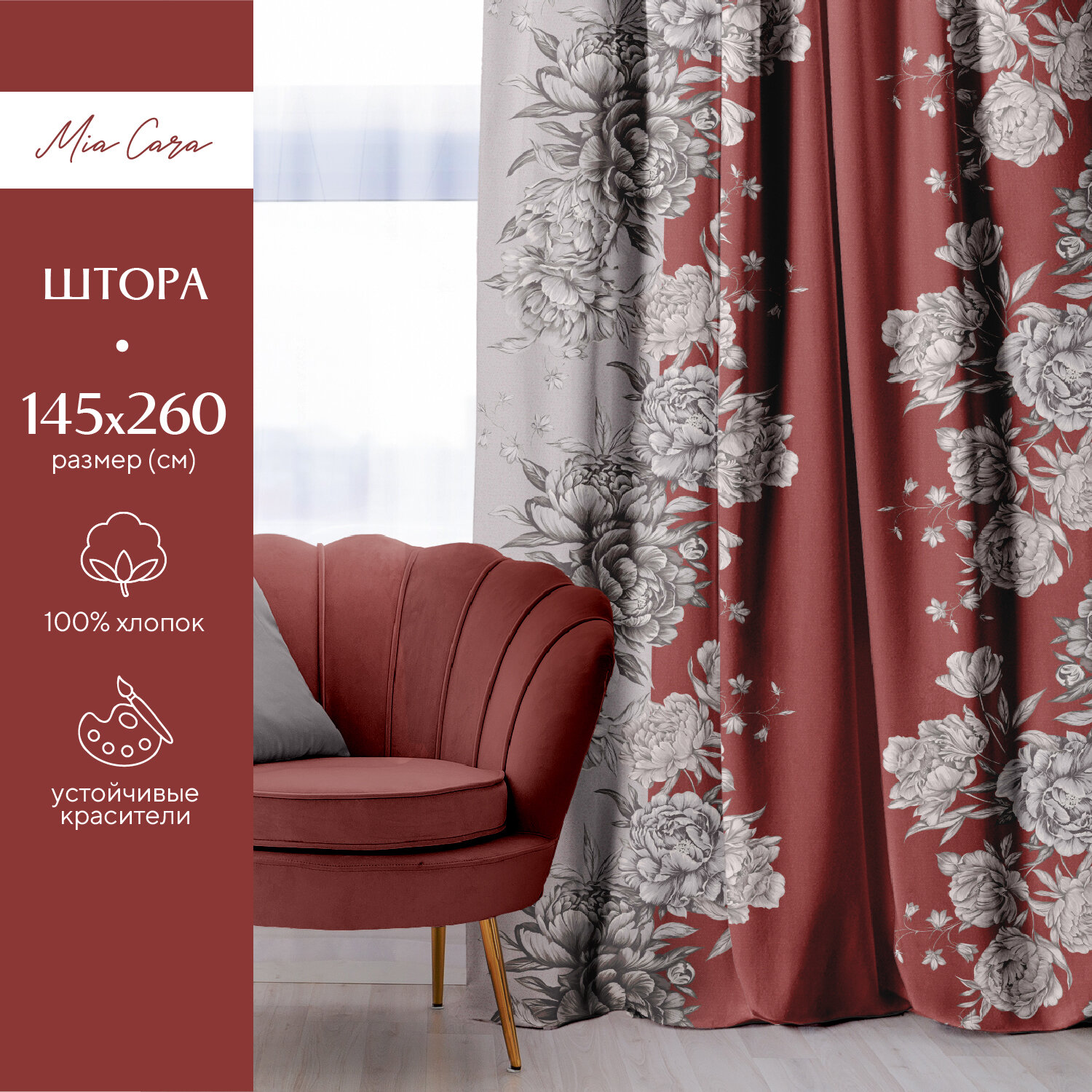Штора рогожка 145х260 "Mia Cara" рис 30200-1 Душистый пион / Штора в гостиную, в комнату