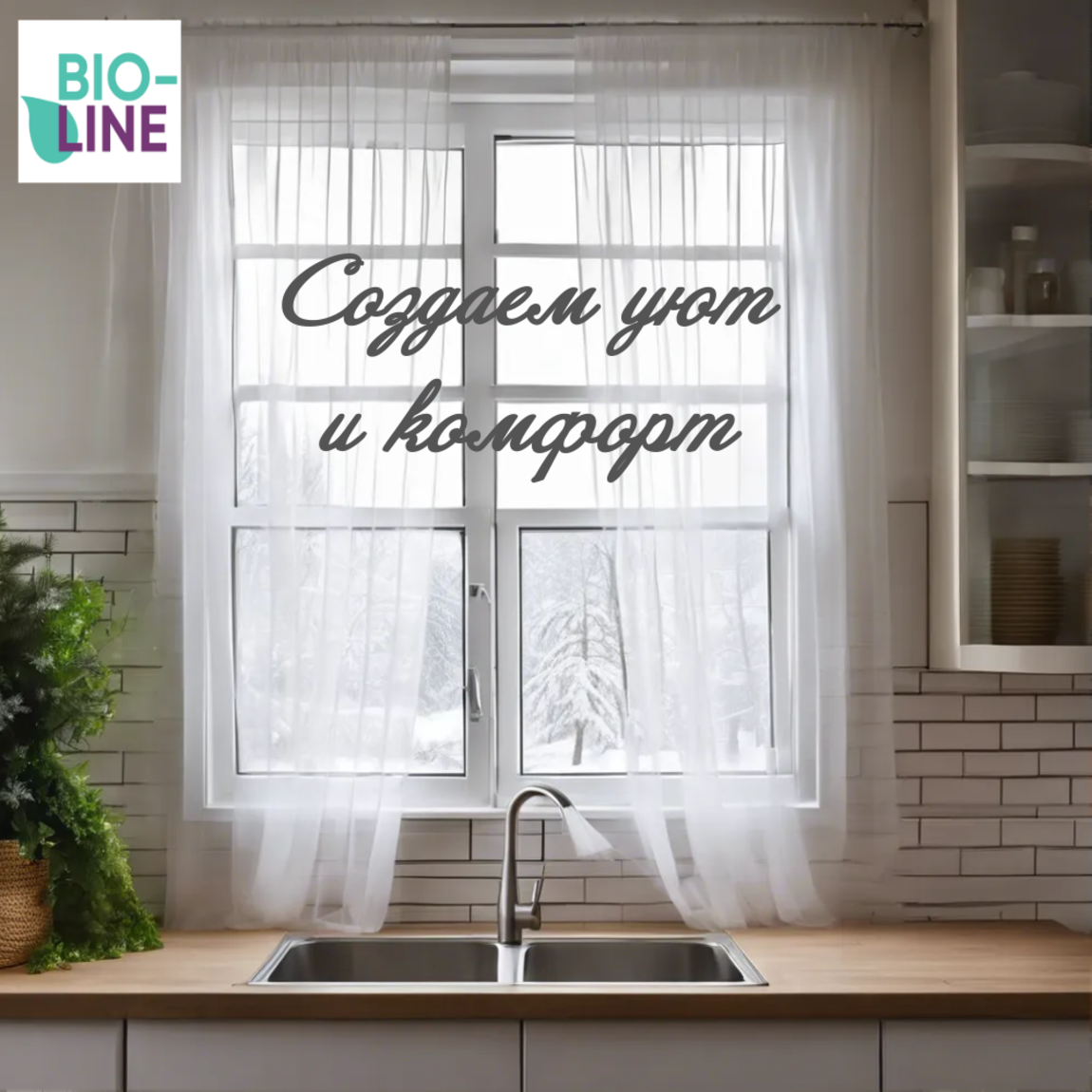 Тюль для кухни короткая Bio-Line, на шторной ленте , тюль вуаль белая 300х120 см
