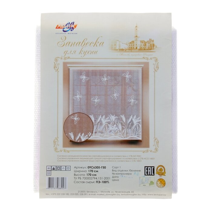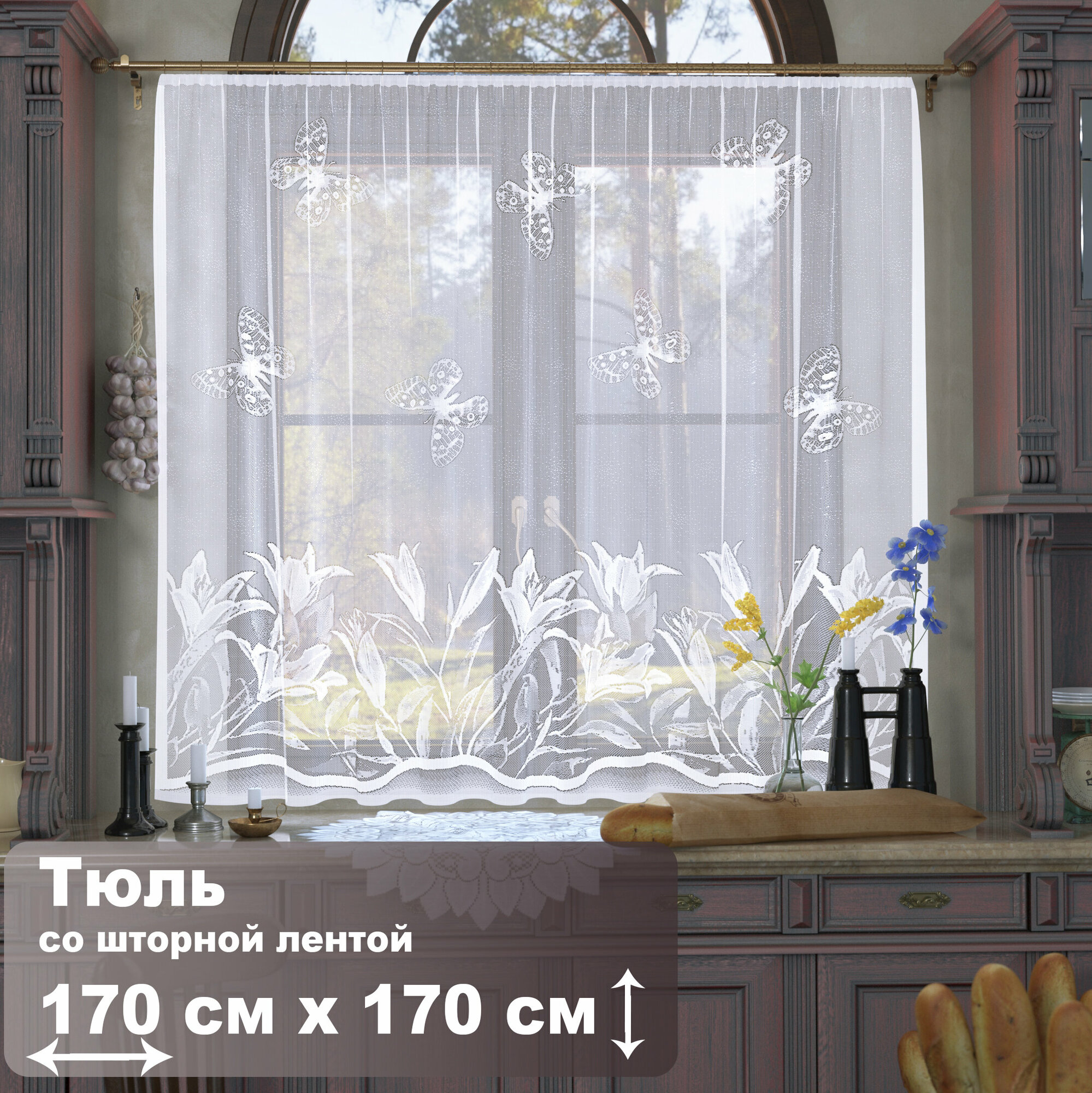 Лента Тюль на кухню без шторной ленты 170х170 см, цвет белый, 100% полиэстер интересное: