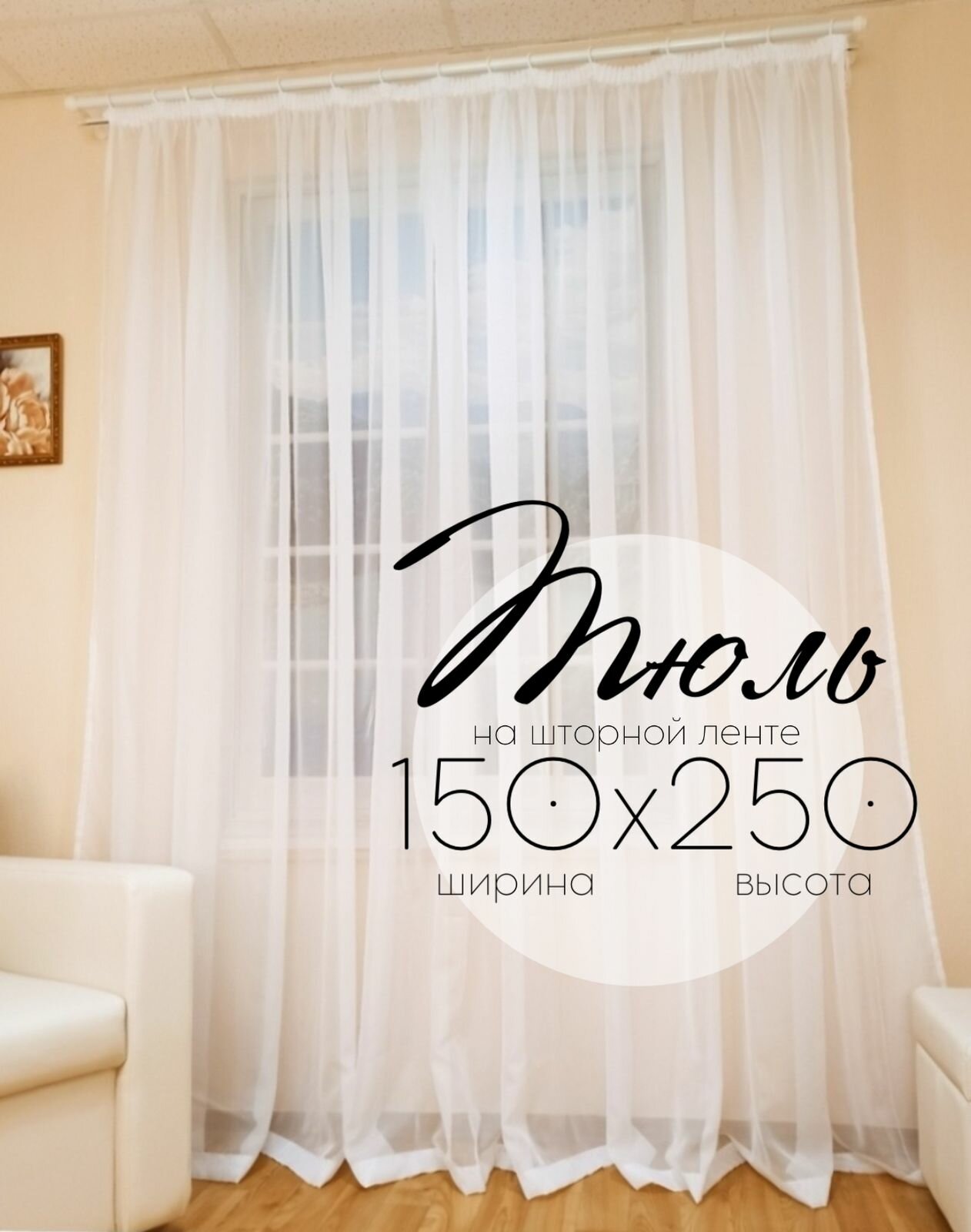 Тюль ТМ Кружева Вуаль высота 250 см, ширина 150 см, крепление - Лента, цвет - белый интересное: