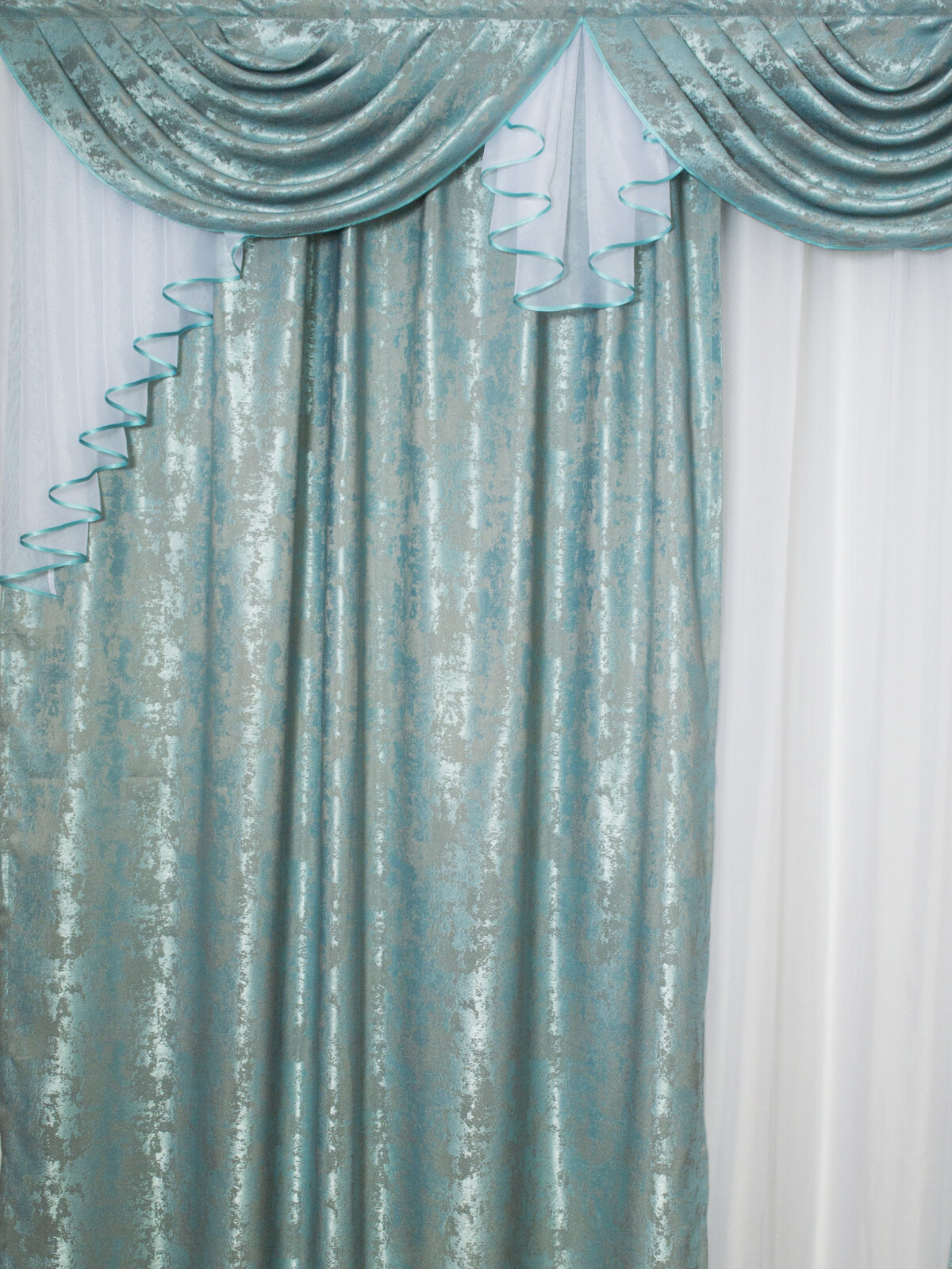 Купить Шторы интерьерные с ламбрекеном и подхватами Графиня бирюзовый