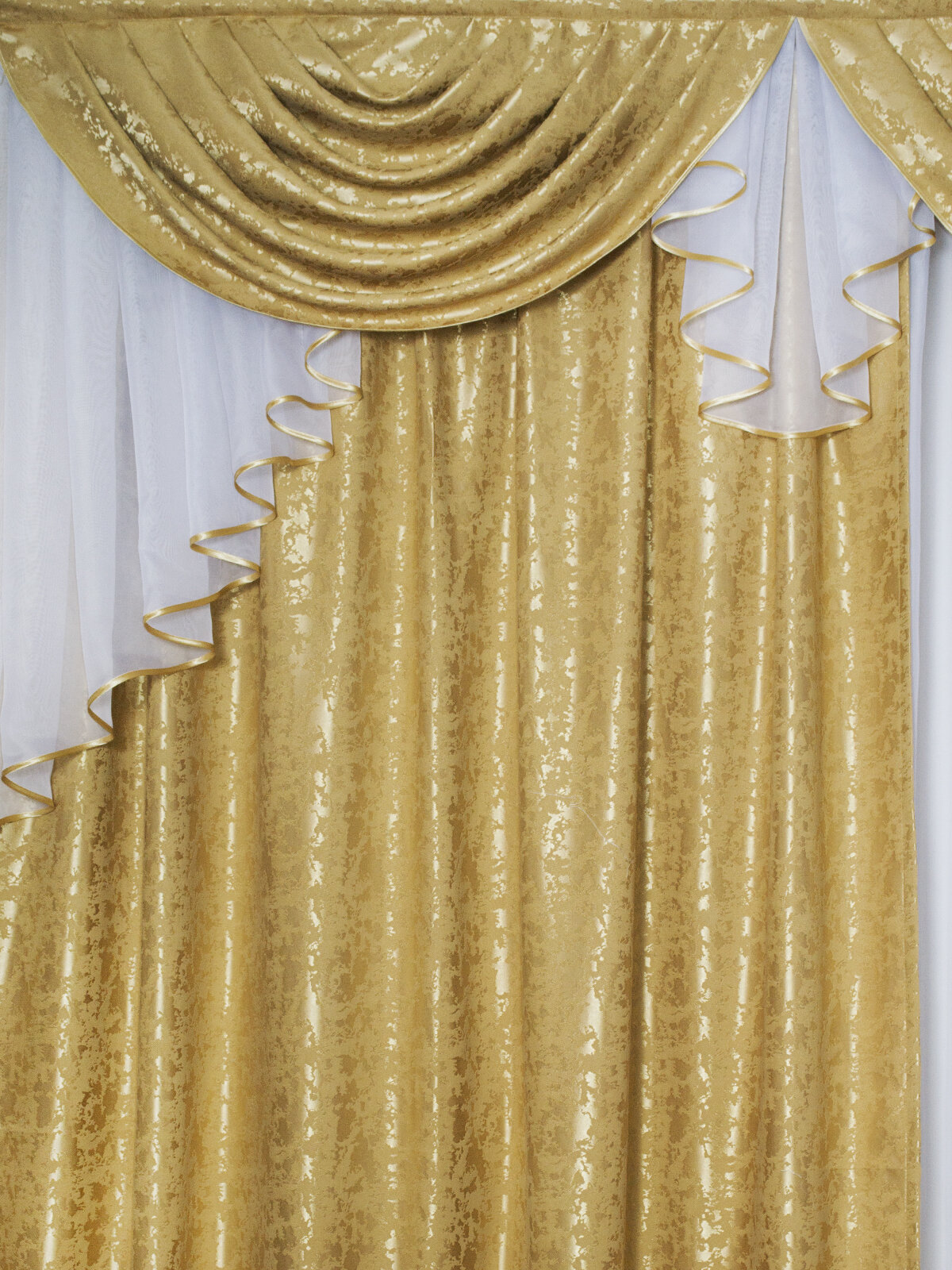 Шторы интерьерные с ламбрекеном и подхватами Графиня золотистая карамель