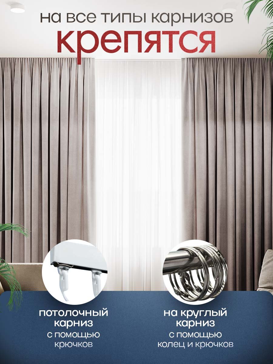 Комплект штор PASIONARIA "Тина Темно-Бежевый" на шторной ленте, 145х270 см - 2 шт.
