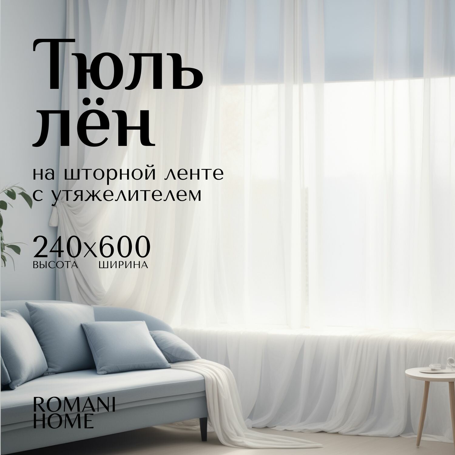 Тюль ROMANI HOME Лен с утяжелителем, 240x600см, белый, 1 шт