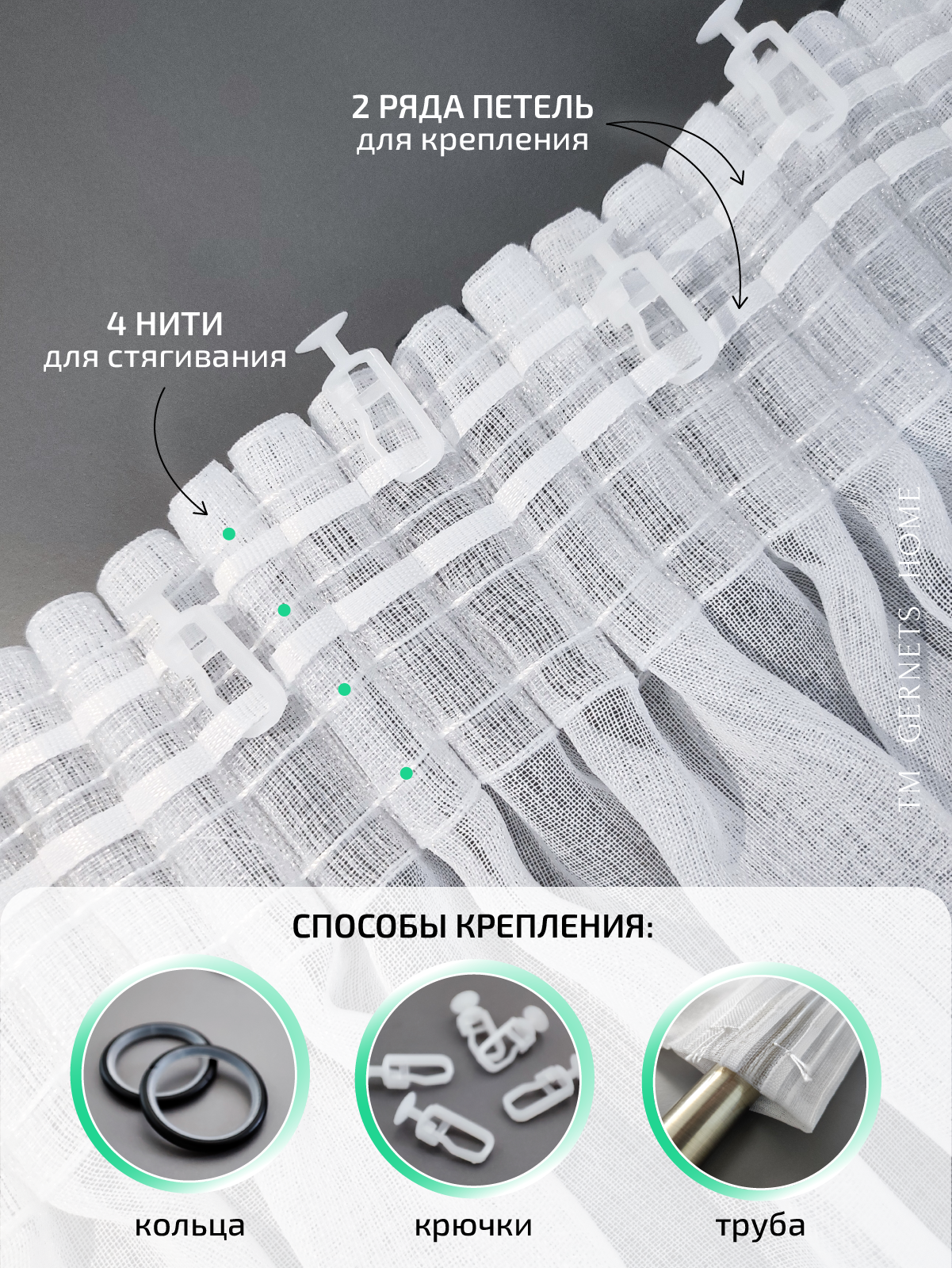 Тюль для гостиной в современном стиле 4х2,7 м, белый, с фактурой льна интересное: