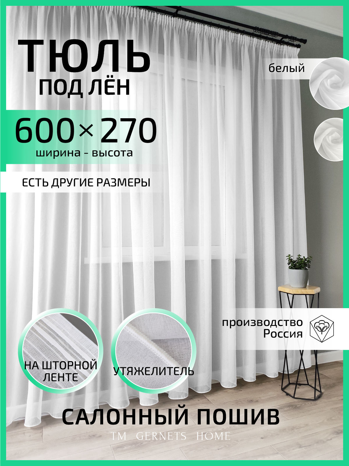 Тюль для гостиной в современном стиле 6х2,7 м, белый с фактурой льна интересное: