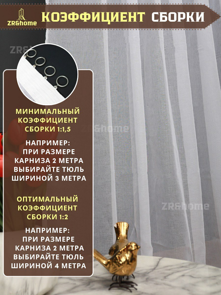 Длинный тюль ZR&Home "Перо", 500х240 см, лен, гостиная, спальня