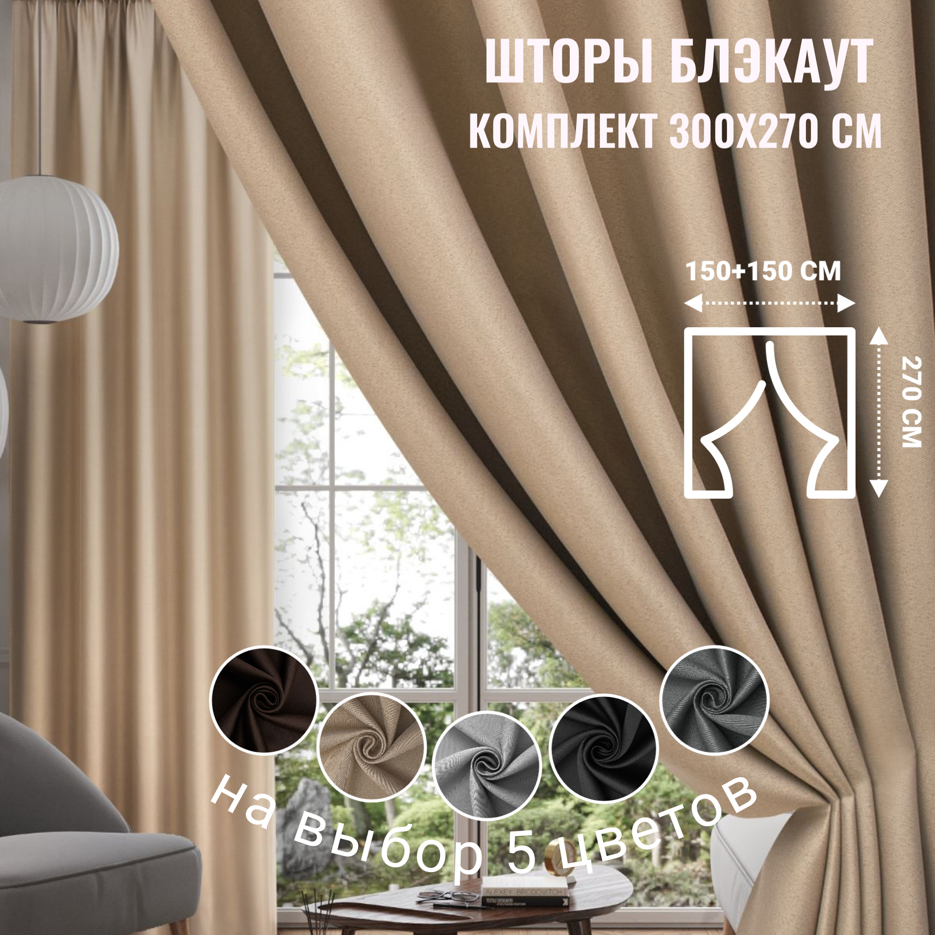 Купить Шторы блэкаут бежевые на окна комплект 150x270 см - 2 штуки в комнату/для спальни/кухни/гостиной/детской