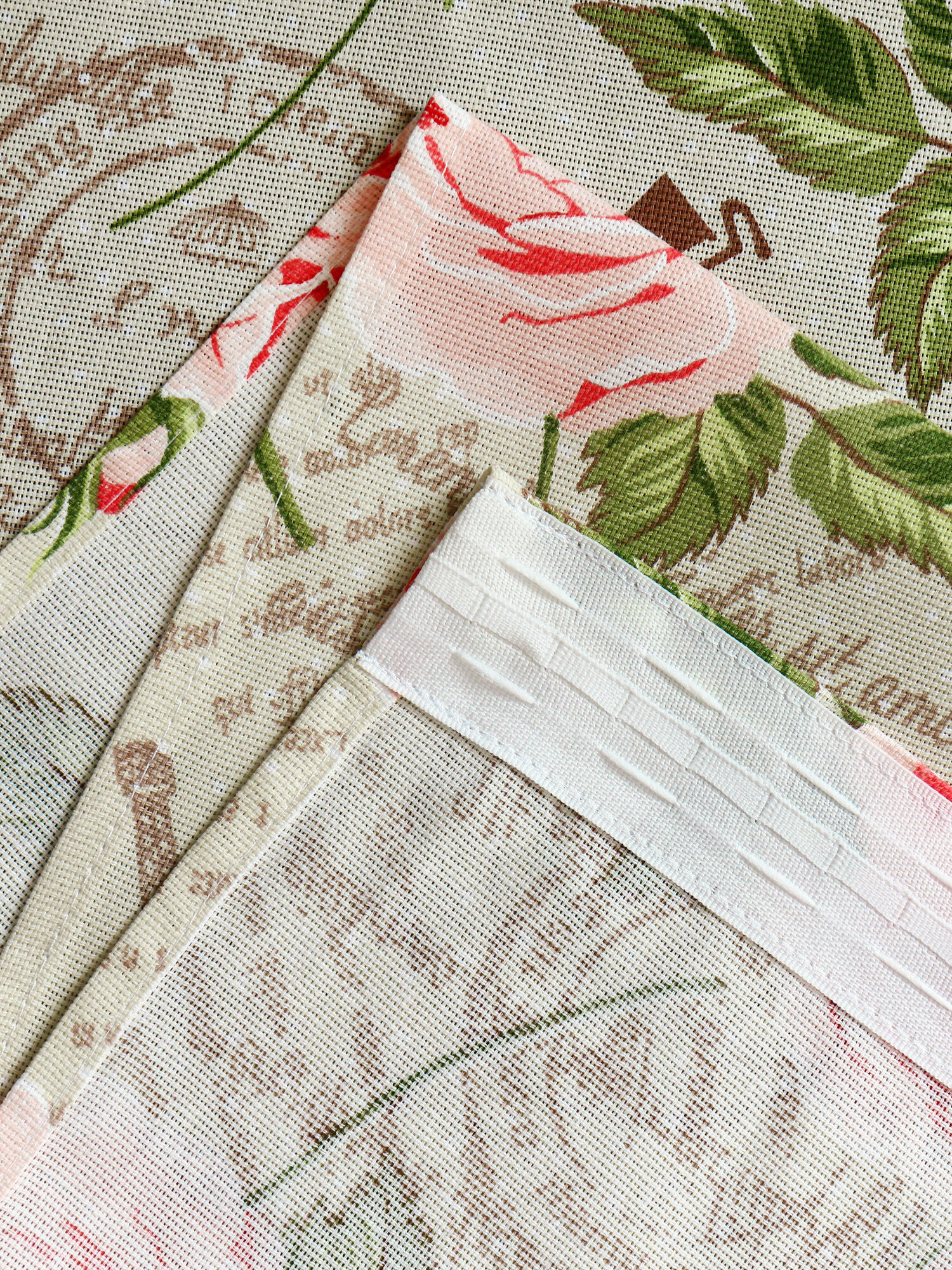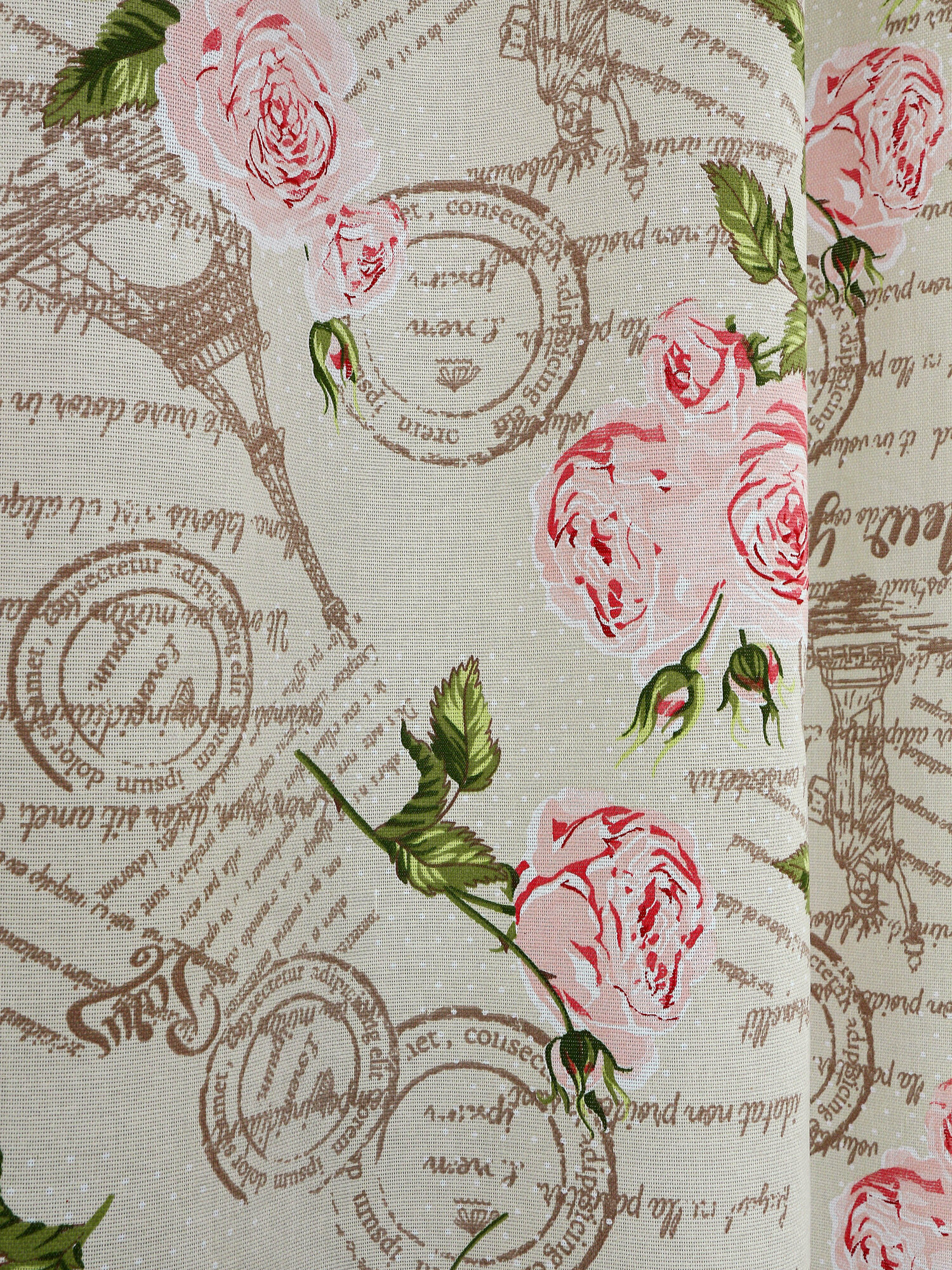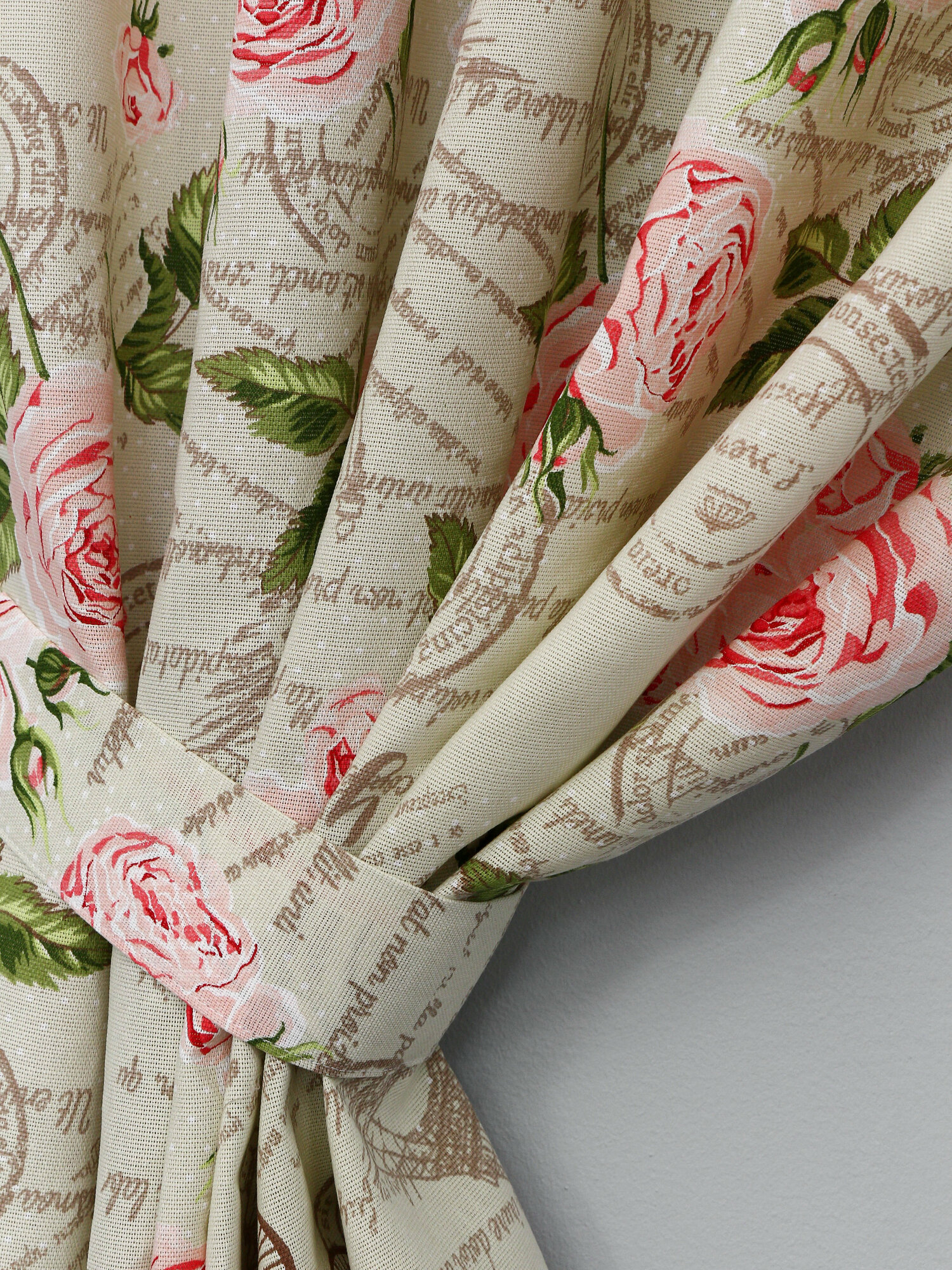 Штора для кухни короткая с подхватом 150х180 см хлопок Розы на бежевом