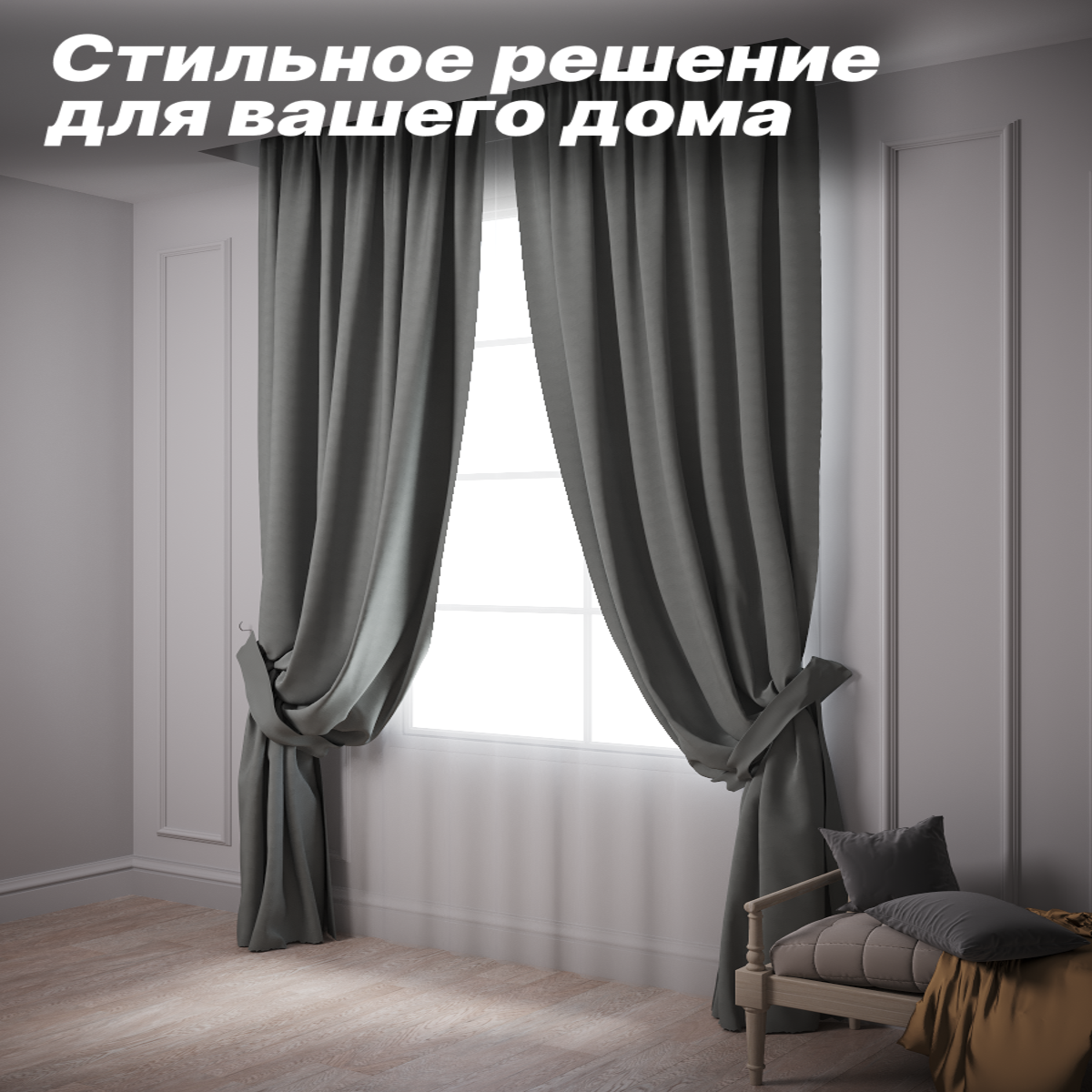 Комплект штор с подхватами Блэкаут 2 шт. 150*260 см для гостиной, детской и спальни, темно-серый