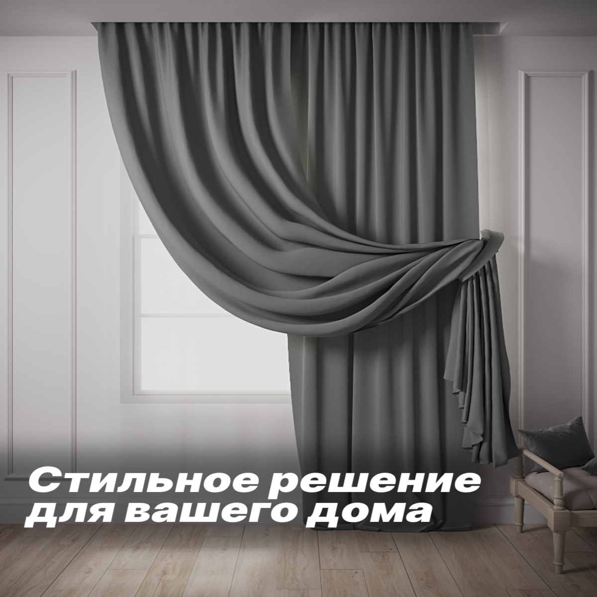 СохранитьШторы для комнаты Комплект штор Блэкаут 2 шт. 150*260 см для гостиной, детской и спальни, темно-серый графит интересное: