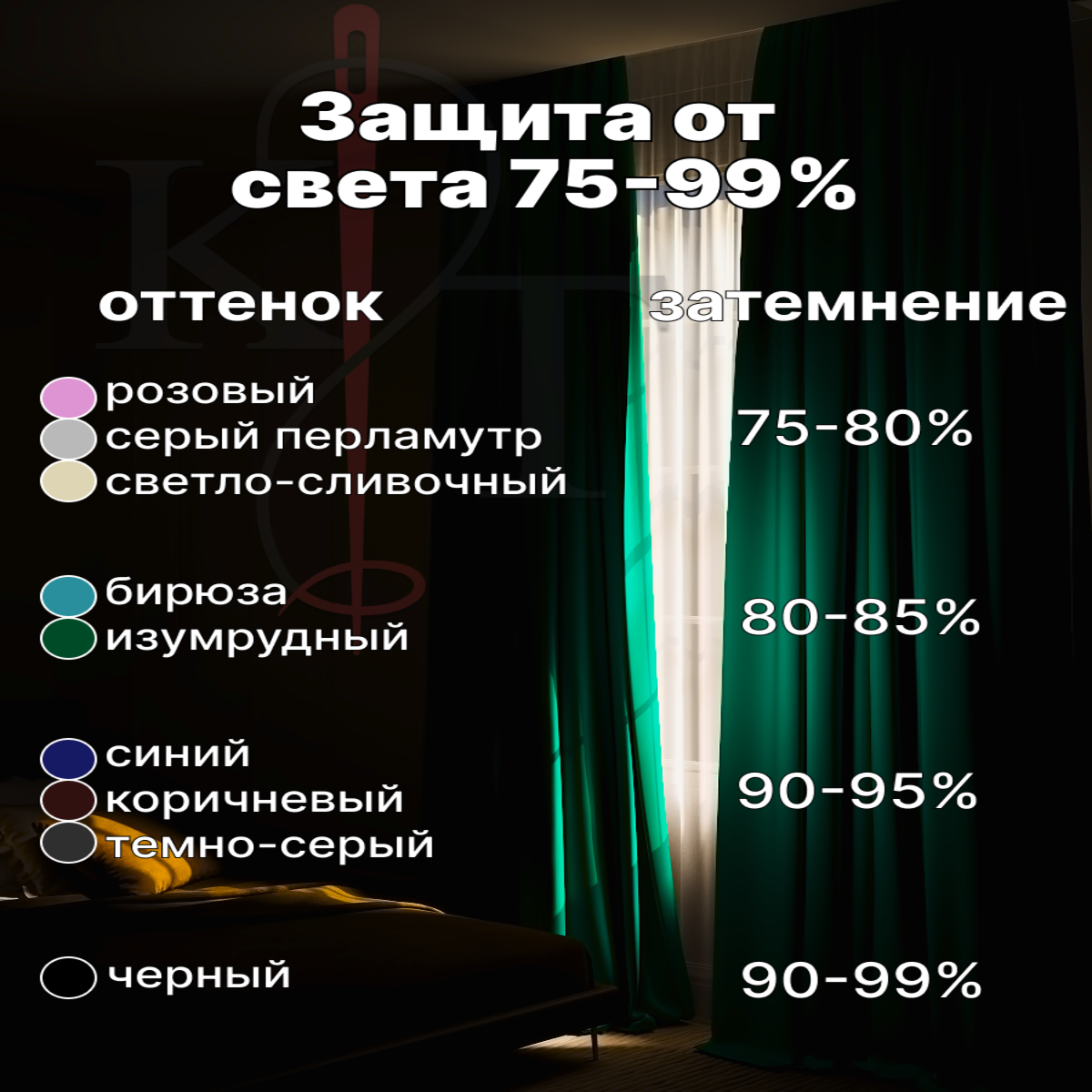 Комплект штор с подхватами Блэкаут 2 шт. 200*260 см для гостиной, детской и спальни, изумрудный