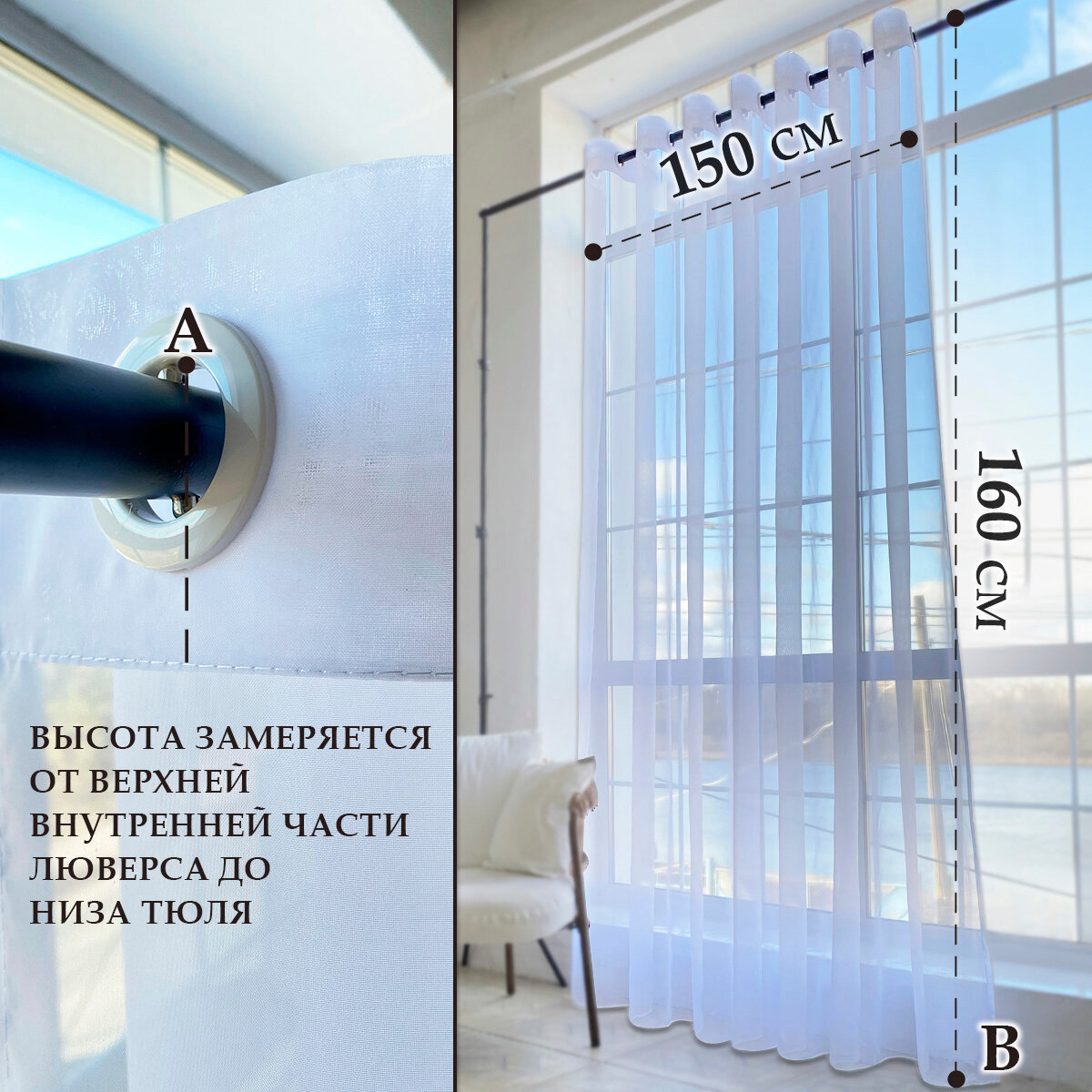 Купить Тюль на люверсах, плотная вуаль, длинная с утяжелителем, 150 x 160 см
