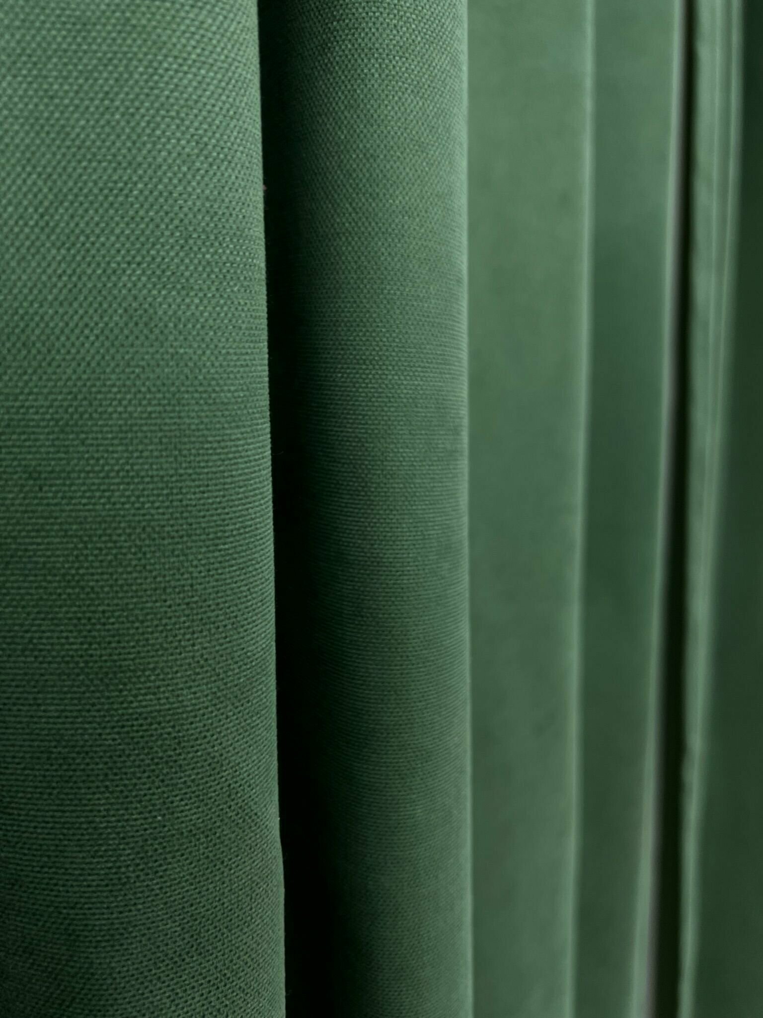 Шторы Милкитекс канвас 400х270см / комплект (200х270см - 2шт) бархатистых портьер для зала, кухни, спальни, зелёные