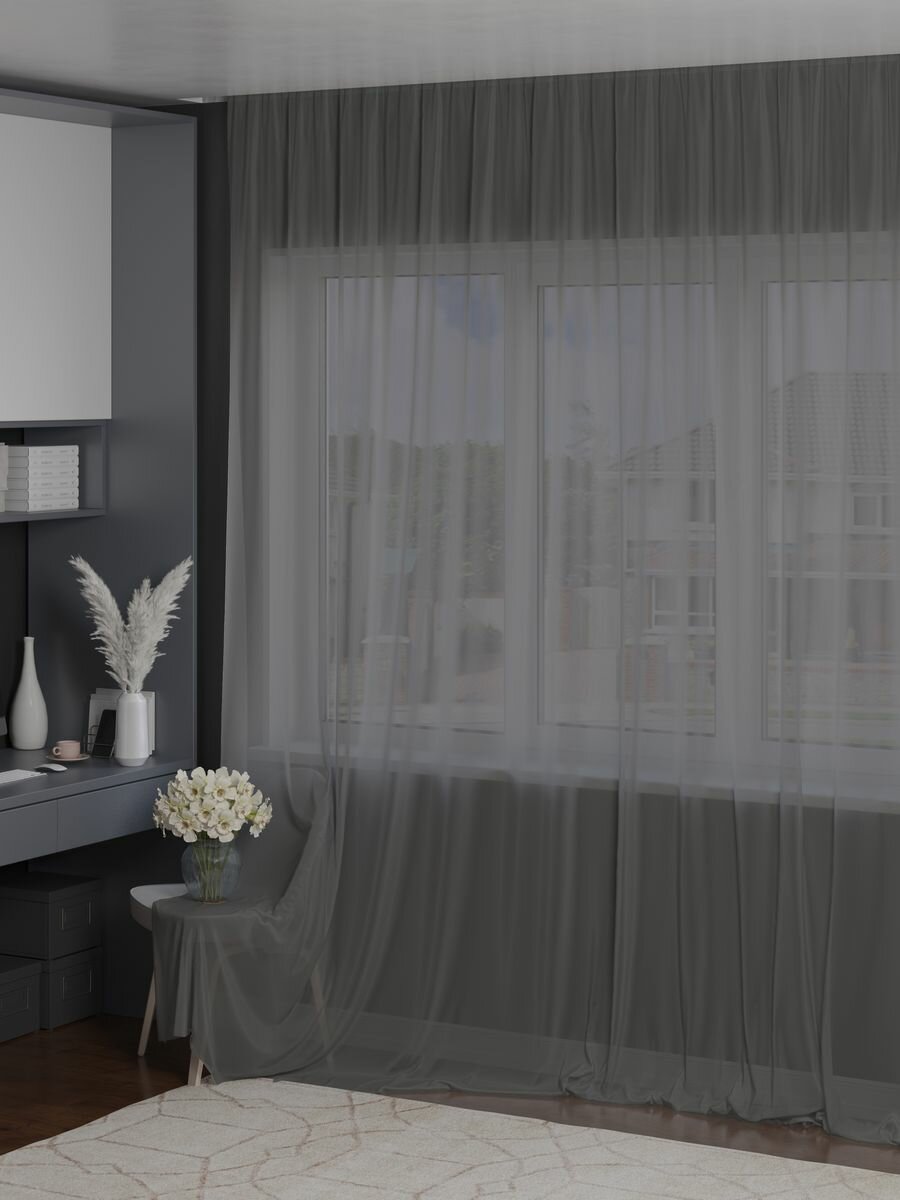 Тюль вуаль 300х240 классический занавес серый интересное: