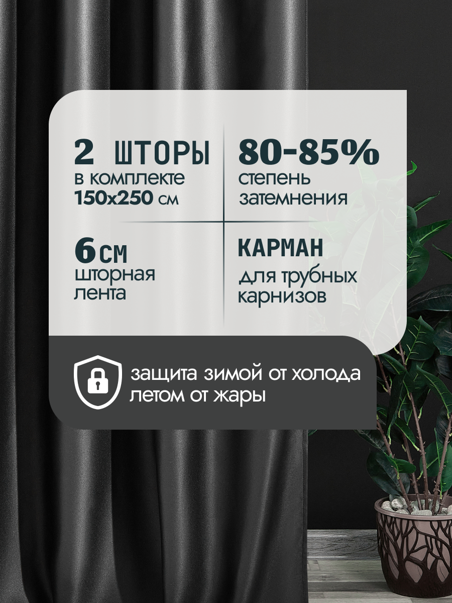 СохранитьШторы блэкаут однотонные плотные для спальни интерьерные черные 150х250 см (2 шт.) интересное: