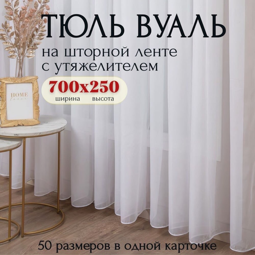 СохранитьТюль Вуаль с утяжелителем белая Высота 250см Ширина 700см, 250х700, для комнаты в гостиную, спальню, кухни шторы интересное:
