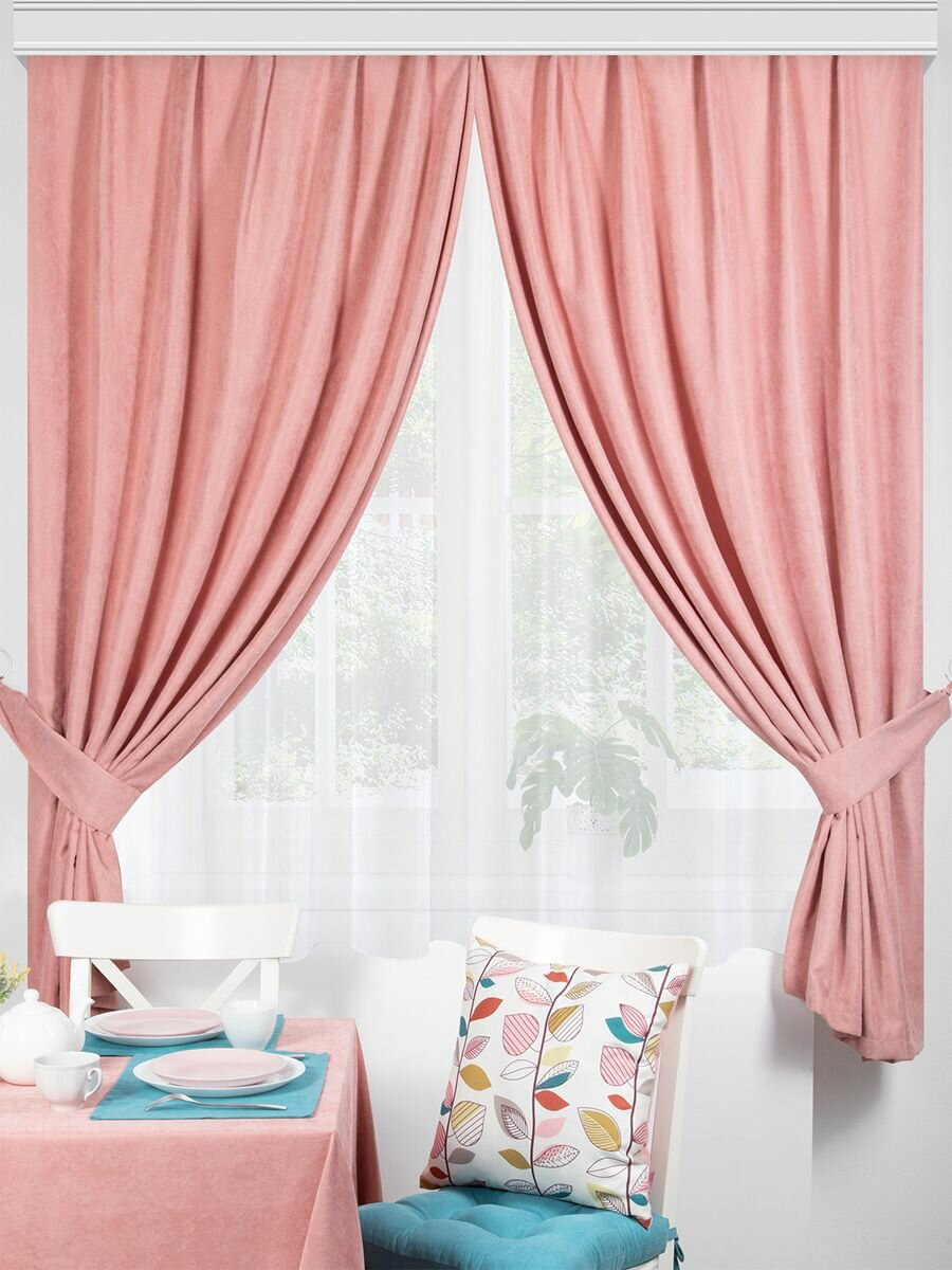 СохранитьШторы кухонные / комплект - 2 шт с подхватами / 136*180 см / ткань велюр / для кухни, дома, дачи / Пыльная роза / Altali интересное: