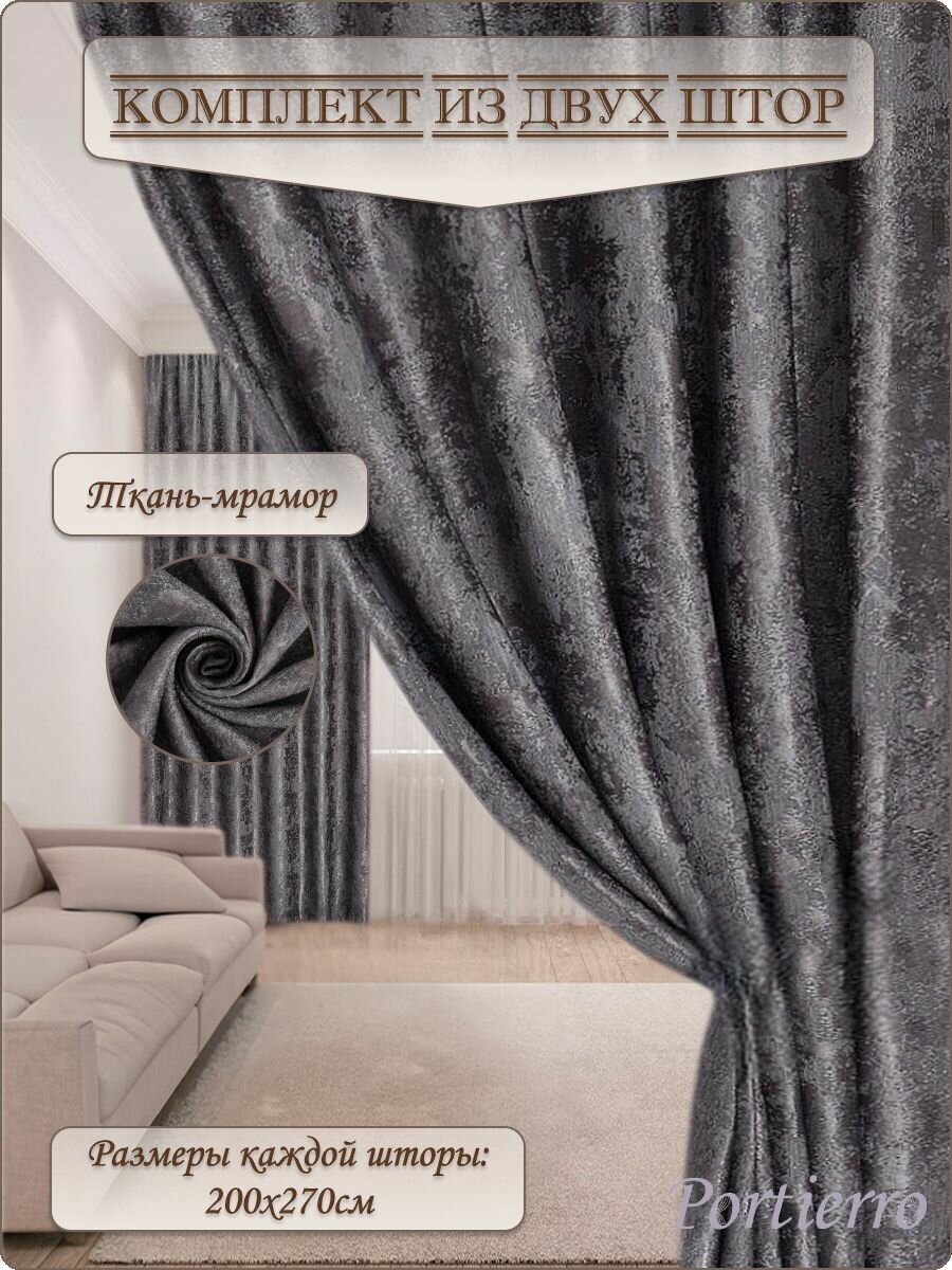 СохранитьКомплект портьерных штор 400x270 см, 2 штуки, мрамор с узором, цвет: серый меланж, графит, серый шелк интересное:
