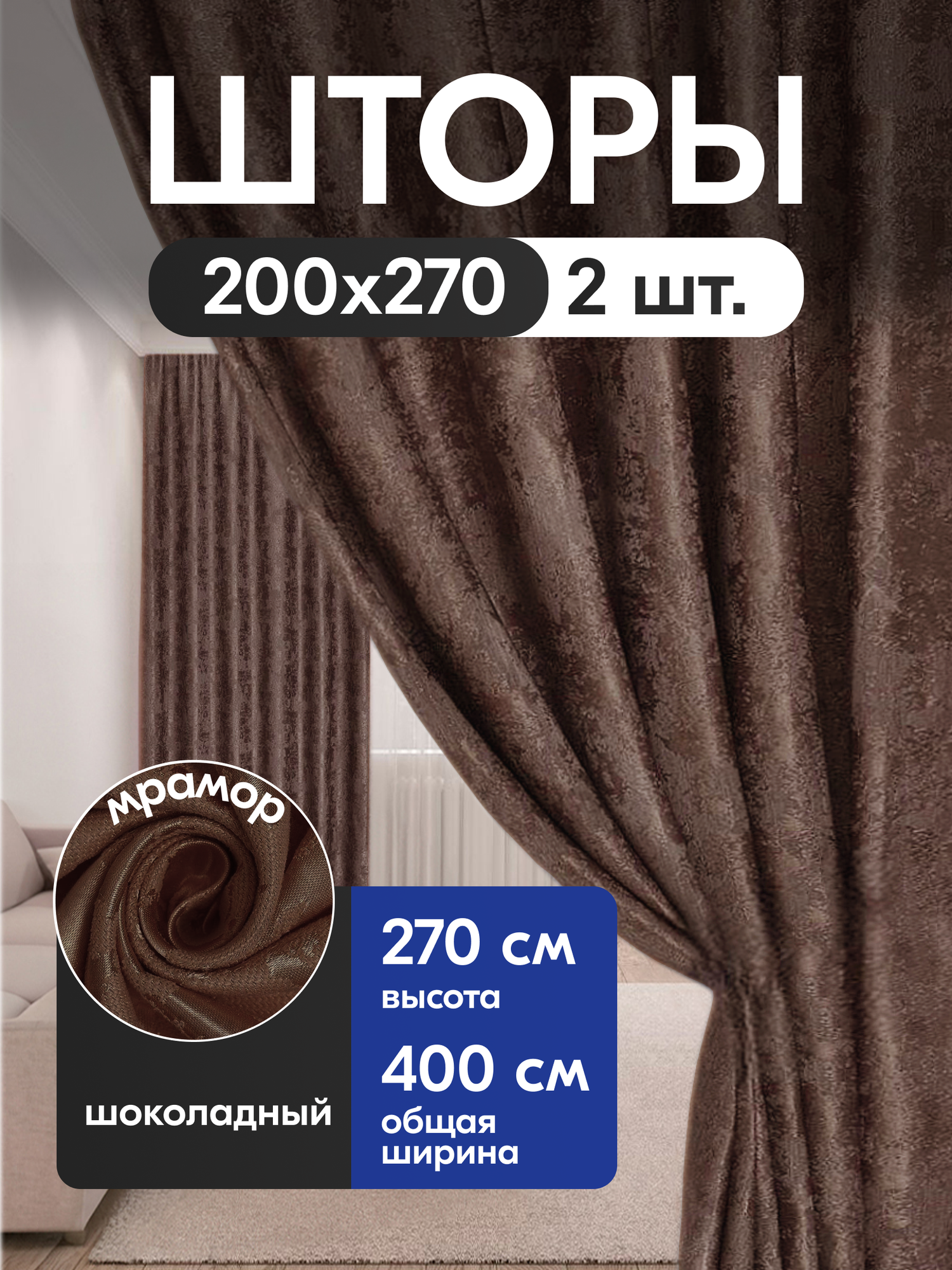 СохранитьКомплект портьерных штор 400x270 см, 2 штуки, мрамор с узором, цвет: шоколадный, коричневый интересное: