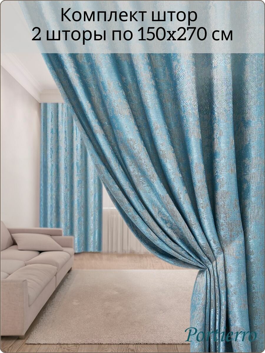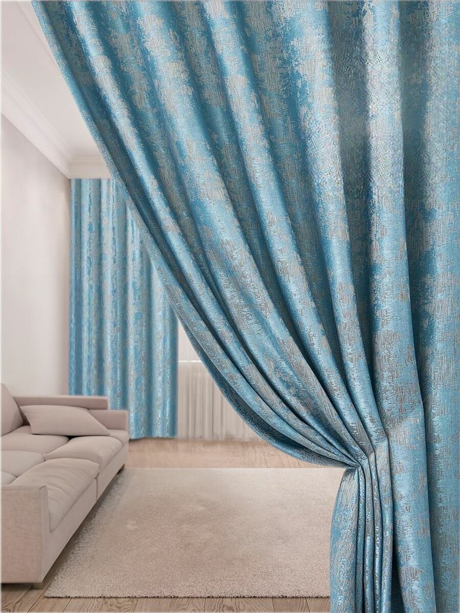 СохранитьКомплект портьерных штор 300x270см, 2 штуки, мрамор с узором, цвет: светло-бирюзовый, аквамариновый интересное: